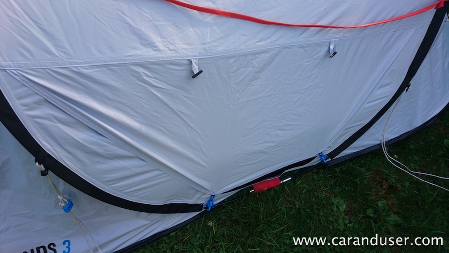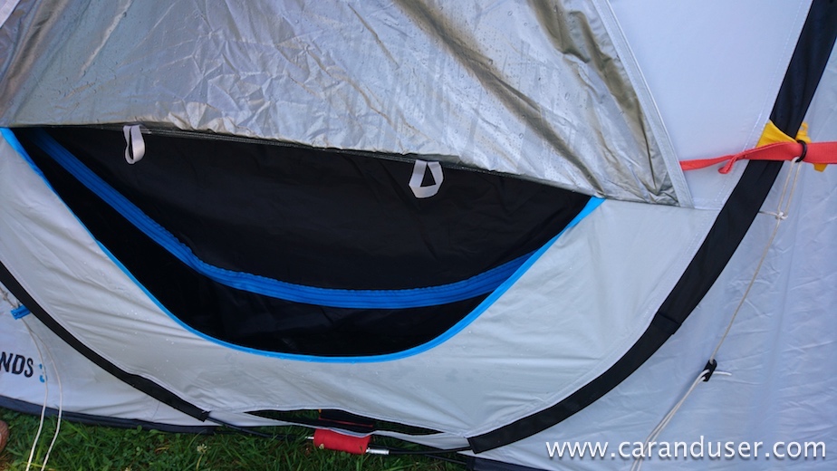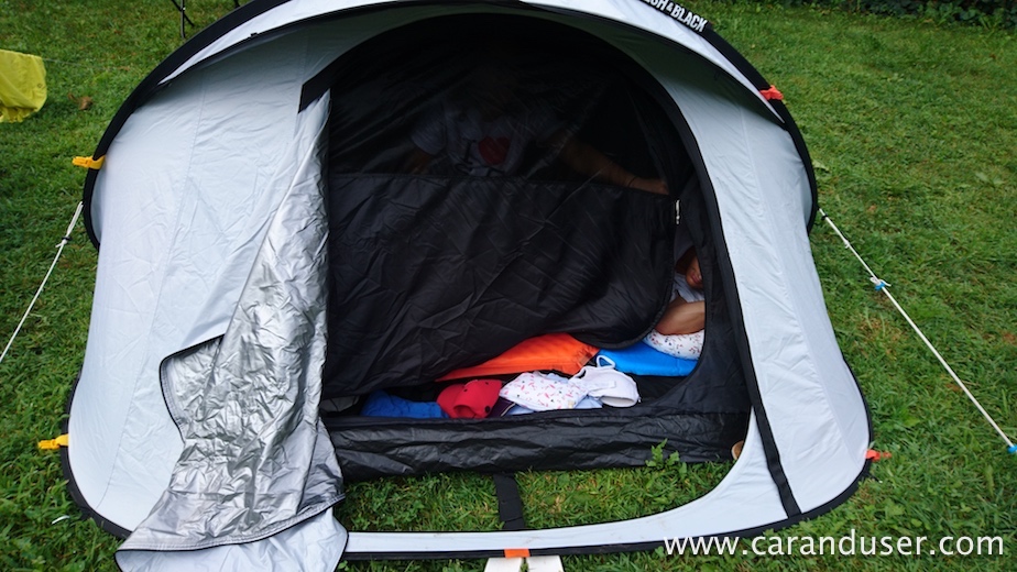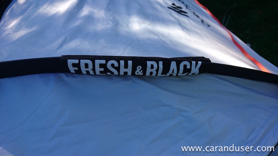 Prav neverjetno je, koliko odličnih idej, se je bohotilo v našem primerku. Predvsem navdušujeta dva stranska zračnika, ki ponoči odlično klimatizirata notranji prostor. Ker nam vreme na poti ni ravno služilo, smo lahko prizkusili tudi njegovo vodotesnost. Po burni noči z nalivom (celotni šotor je izpostavljen 200 litrom vode na uro in kvadratni meter za 4 ure). (2000 mm šotorsko krilo iz poliestra s PU-prevleko, 120g/m2 polietilenska ležalna podloga, vsi šivi zapečateni s toplotno vezanim trakom) in vetrom lahko potrdimo, da smo vsi ostali suhi, kar je verjetno presenetilo tudi vso trojico v prostoru. In zlaganje? Quechua Fresh&Black se zlaga nekoliko težje kot se postavlja, toda ob nekaj prakse, je tudi to delo izjemno enostavno in predvsem hitro. Mi smo posneli video zlaganja, pri čemer še nismo bili do konca utečeni, a je bil celoten postopek odmerjen s slabima dvema minutama.