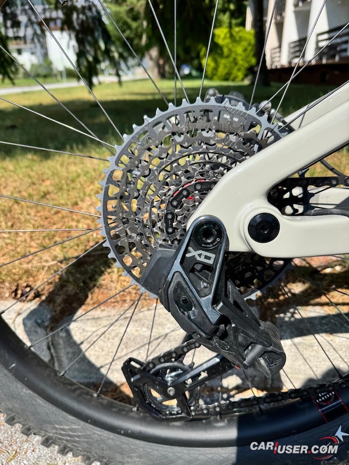 Veliko je bilo rečenega na temo »samo« 600W baterije. Za njo se je Santa Cruz odločil, da je znižal težo in predvsem težišče premaknil čim nižje. Skupaj z izjemno učinkovitem motorjem za moje potrebe 600W povsem zadošča. V praksi: zelo strmi klanci, večino časa program eMTB, pedaliranje precej močno, prevoženih 1.550 višincev in 50 km je pustilo še 7 % baterije. Po takšni vožnji in ob dejstvu, da vsak trail odpelješ v »full attack« modu, si povsem vesel, ko kolo pospraviš in priklopiš na polnjenje. Morda bo komu minus, da baterija ni snemljiva, a tudi to je kompromis, ki omogoča večjo togost, tišino in spustaško zmogljivost.