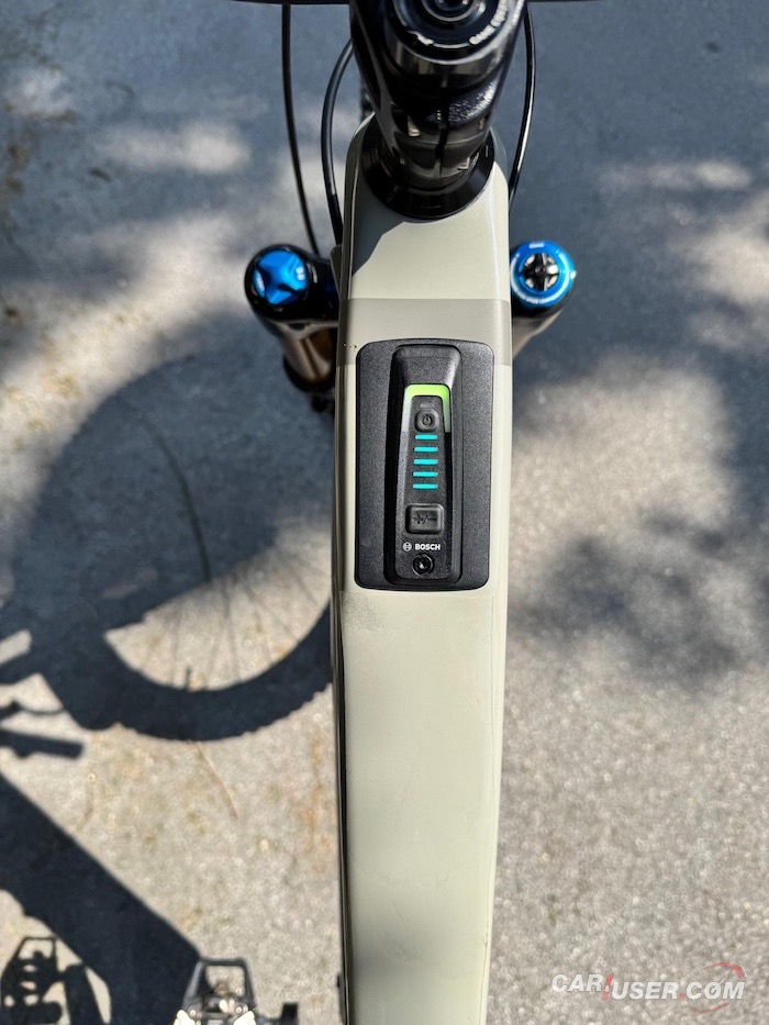 Veliko je bilo rečenega na temo »samo« 600W baterije. Za njo se je Santa Cruz odločil, da je znižal težo in predvsem težišče premaknil čim nižje. Skupaj z izjemno učinkovitem motorjem za moje potrebe 600W povsem zadošča. V praksi: zelo strmi klanci, večino časa program eMTB, pedaliranje precej močno, prevoženih 1.550 višincev in 50 km je pustilo še 7 % baterije. Po takšni vožnji in ob dejstvu, da vsak trail odpelješ v »full attack« modu, si povsem vesel, ko kolo pospraviš in priklopiš na polnjenje. Morda bo komu minus, da baterija ni snemljiva, a tudi to je kompromis, ki omogoča večjo togost, tišino in spustaško zmogljivost.
