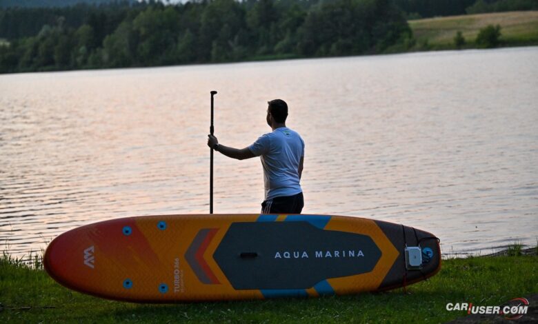 Sup Turbo je na voljo v dveh velikostih, in sicer v 320 in 366 centimetrski izvedenki. Mi smo imeli na preizkusu daljšo, ki se je izkazala za zelo korektno izbiro. Kapaciteta nosilnosti je namreč 170 kilogramov, kolega pa jo je s priloženo tlačilko preobrazil iz prazne „gume“ v trdo desko v sedmih minutah. Pohvaliti velja, da je kopletu priloženo tudi veslo.