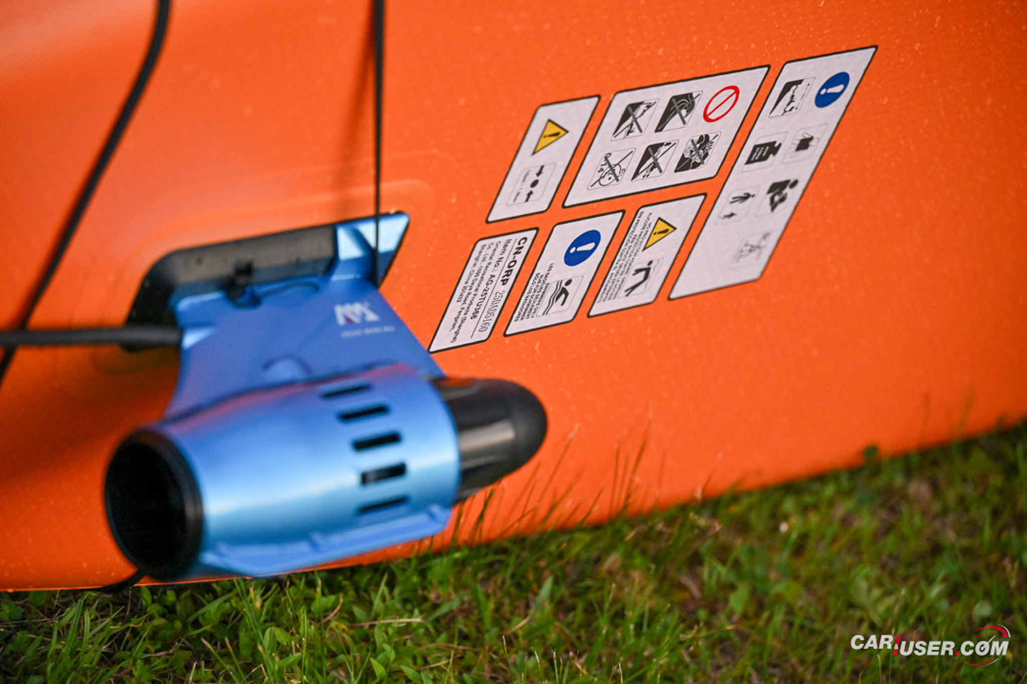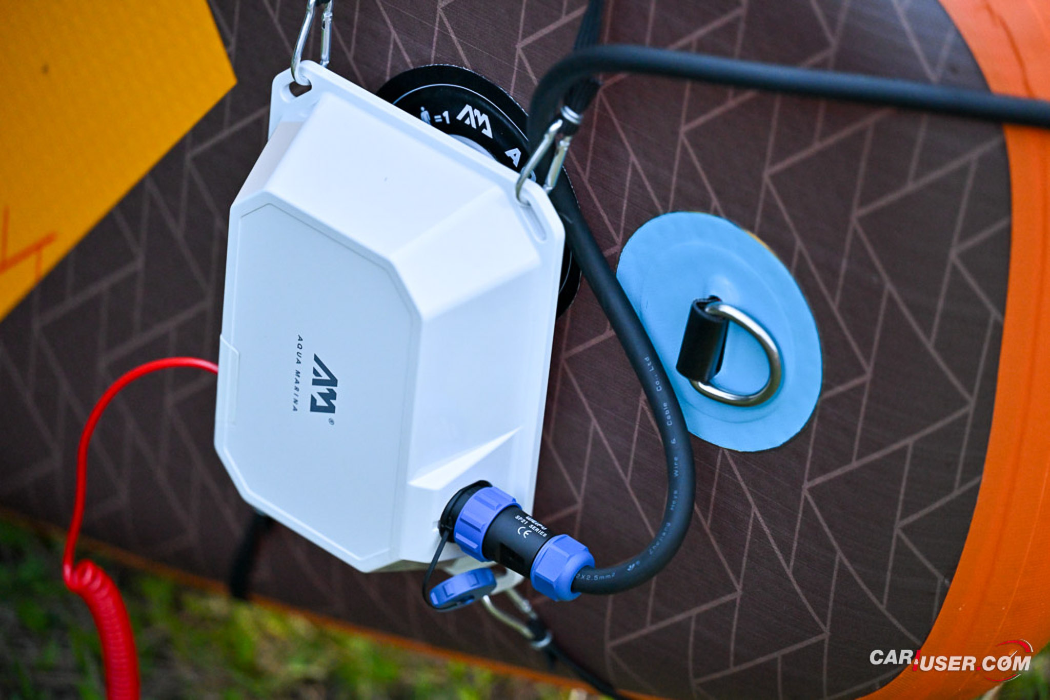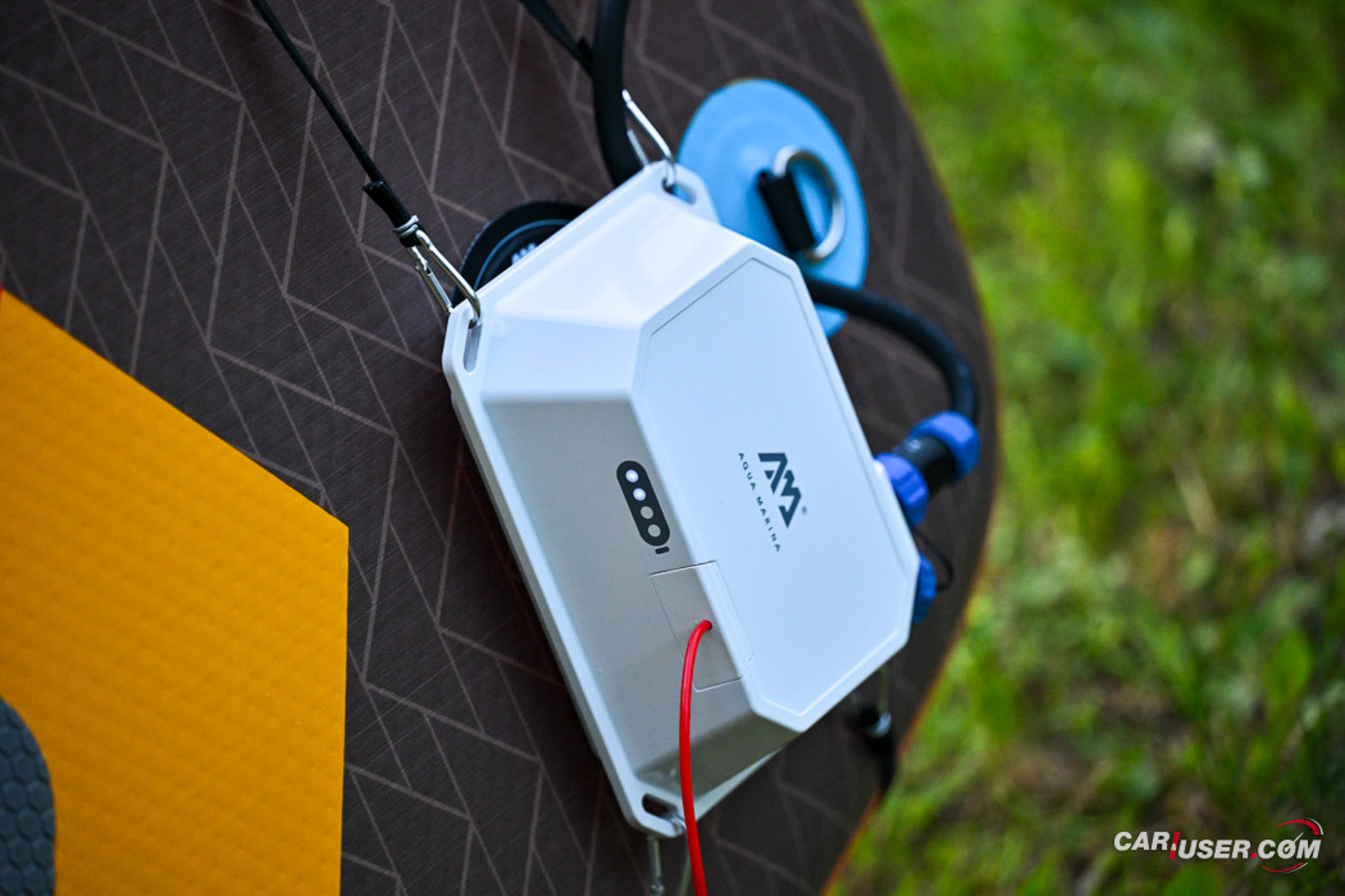 Kot je že dolgo znano, Kitajci že lep čas ne proizvajajo „pofla“. Električni motor pride v kompletu v lični stiroporasti škatli, zraven pa boste prejeli še baterijo s kapaciteto 97,8 Wh, polnilni kabel, daljinski upravljalnik, varovalni kabel in polnilec. Namestitev motorja na sup je sila enostavna in ne zahteva kaj bistveno več časa kot natikanje smernika. Motor povežete z baterijo, ki jo pritrdite na sup z dvema priloženima elastikama, na roko si poveznete daljinski upravljalnik in že ste prirpavljeni na raziskovanje po vodi.