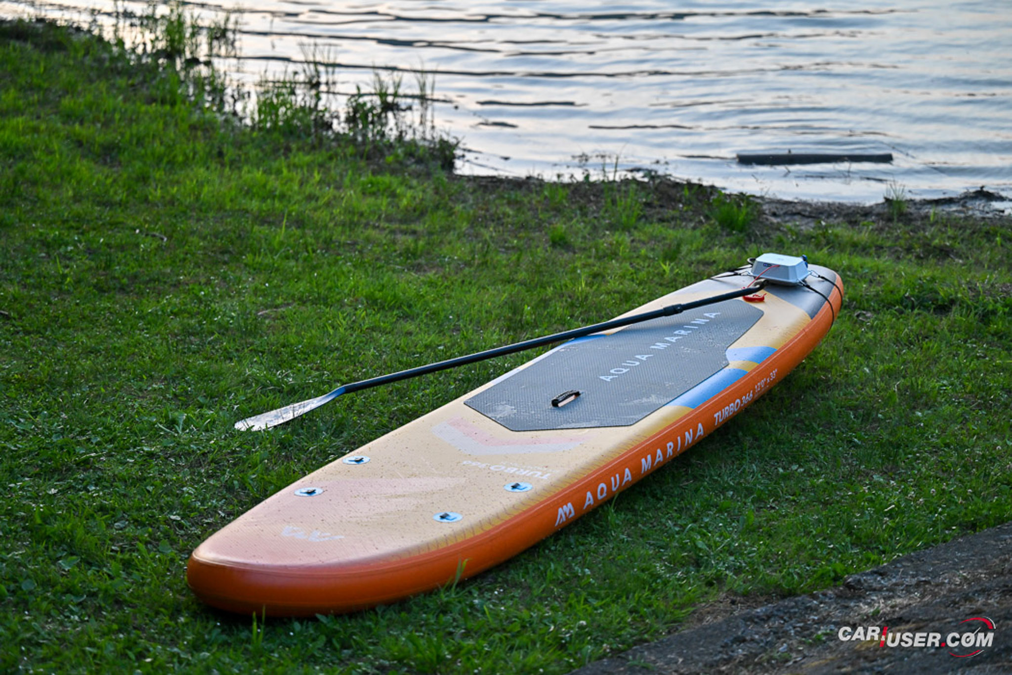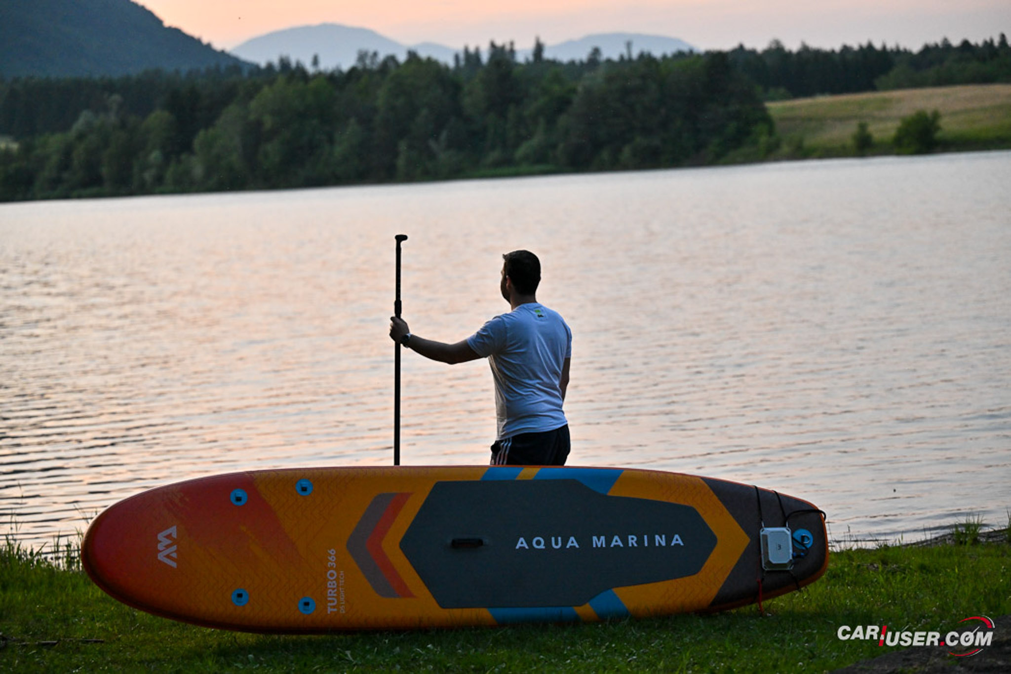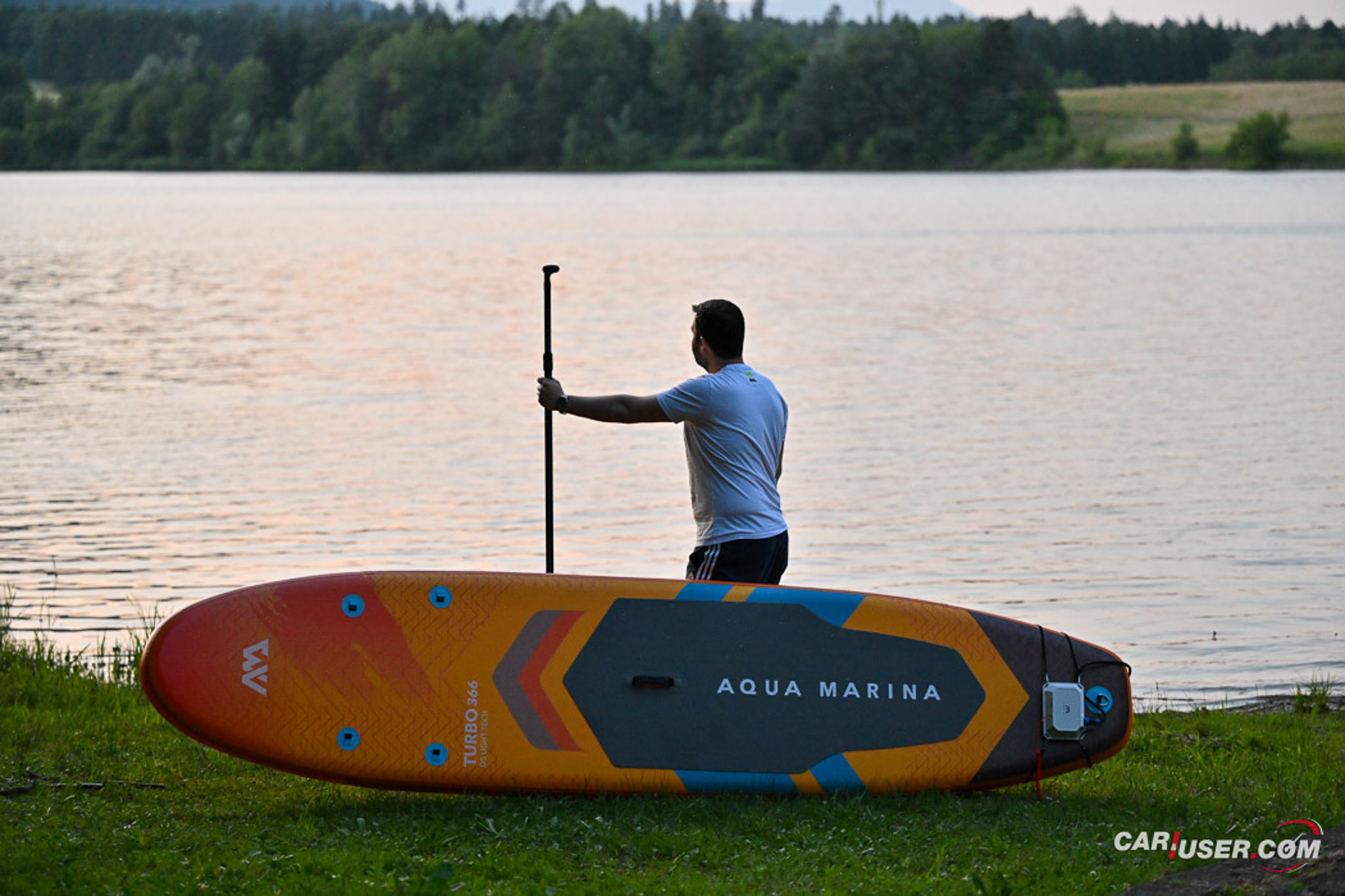 Sup Turbo je na voljo v dveh velikostih, in sicer v 320 in 366 centimetrski izvedenki. Mi smo imeli na preizkusu daljšo, ki se je izkazala za zelo korektno izbiro. Kapaciteta nosilnosti je namreč 170 kilogramov, kolega pa jo je s priloženo tlačilko preobrazil iz prazne „gume“ v trdo desko v sedmih minutah. Pohvaliti velja, da je kopletu priloženo tudi veslo.