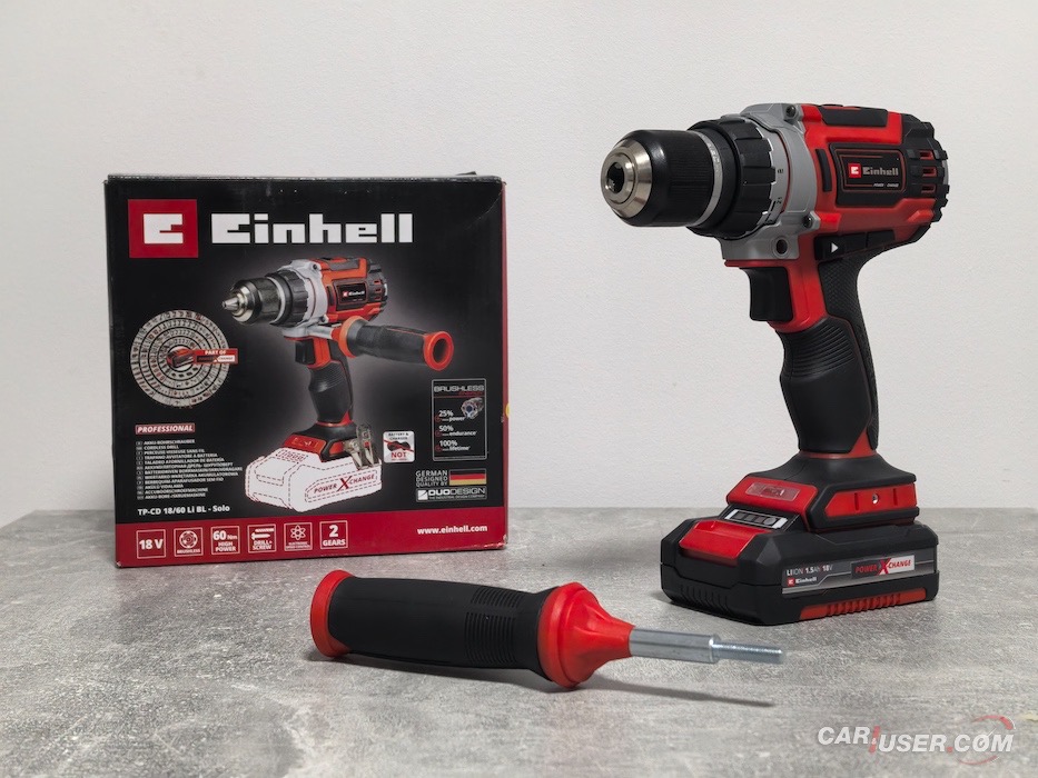 Einhell pri sledenju trendov ni zaspal in danes nudi precej široko paleto orodja z akumulatorskim sistemom Power X-Change, ki napaja več kot 300 naprav – od ročnega orodja do recimo sesalca, kosilnico, prekopalnik, verižno žago, in nenazadnje tudi potopno črpalko za čisto vodo ali celo akumulatorski aparat za kavo. »You name it, we got it!« bi dejali angleško govoreči Einhellovci. V našem uredništvu smo pričeli pri osnovah, in sicer pri akumulatorskem udarnem vrtalnem vijačniku z oznako TP-CD 18/60 Li-i BL Solo.