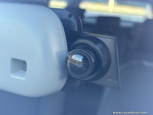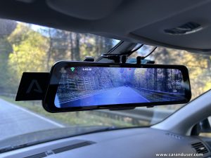 Uporaba samega zaslona je sila preprosta, le vključimo jo s pritiskom gumba pod 9,66-palčnim zaslonom, nadaljnje funkcije upravljamo z dotikom. Prek zaslona lahko spreminjamo razne nastavitve v meniju, premikamo višino pogleda obeh kamer, vklopimo snemanje posnetkov, zajamemo fotografije, lahko pa se povežemo tudi z mobilnim telefonom prek aplikacije. S pomočjo vgrajene Wi-Fi povezave lahko brezžično dostopamo do posnetkov, jih urejamo in naložimo neposredno v shrambo mobilnika.