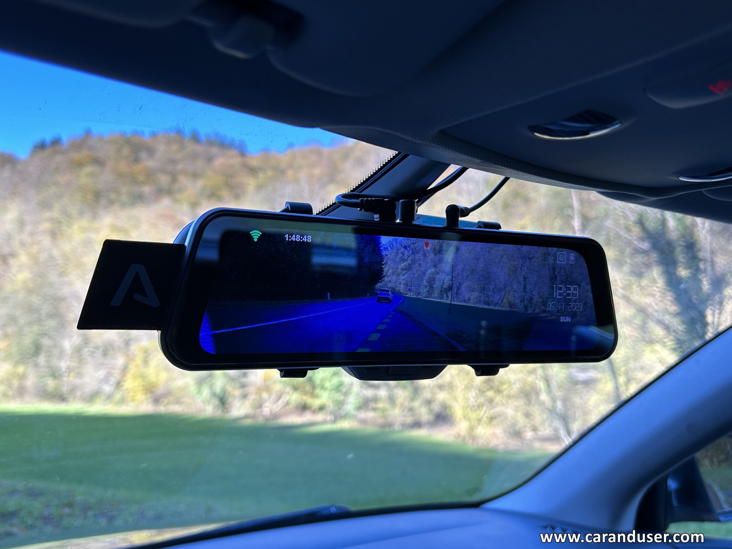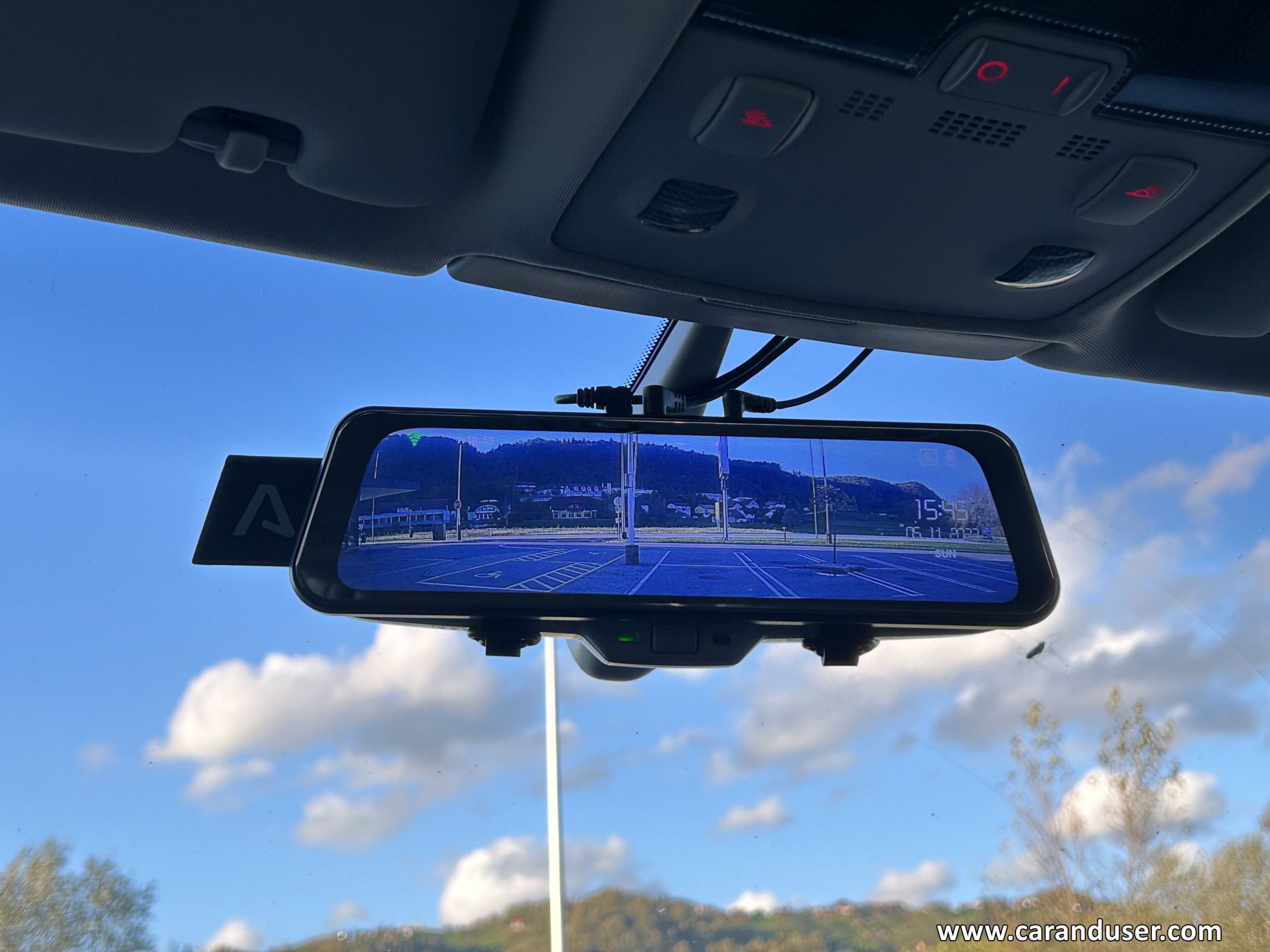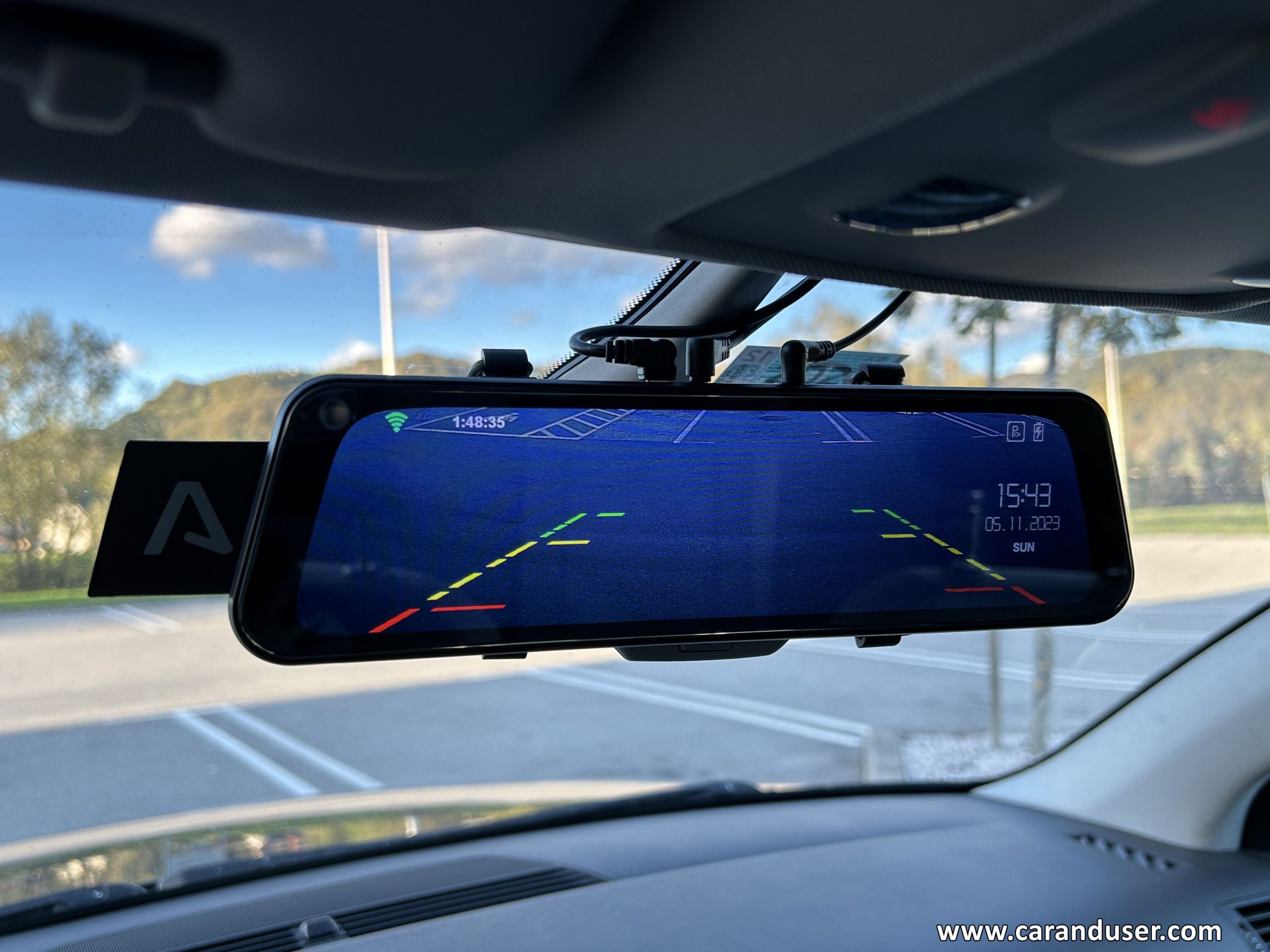 Uporaba samega zaslona je sila preprosta, le vključimo jo s pritiskom gumba pod 9,66-palčnim zaslonom, nadaljnje funkcije upravljamo z dotikom. Prek zaslona lahko spreminjamo razne nastavitve v meniju, premikamo višino pogleda obeh kamer, vklopimo snemanje posnetkov, zajamemo fotografije, lahko pa se povežemo tudi z mobilnim telefonom prek aplikacije. S pomočjo vgrajene Wi-Fi povezave lahko brezžično dostopamo do posnetkov, jih urejamo in naložimo neposredno v shrambo mobilnika.