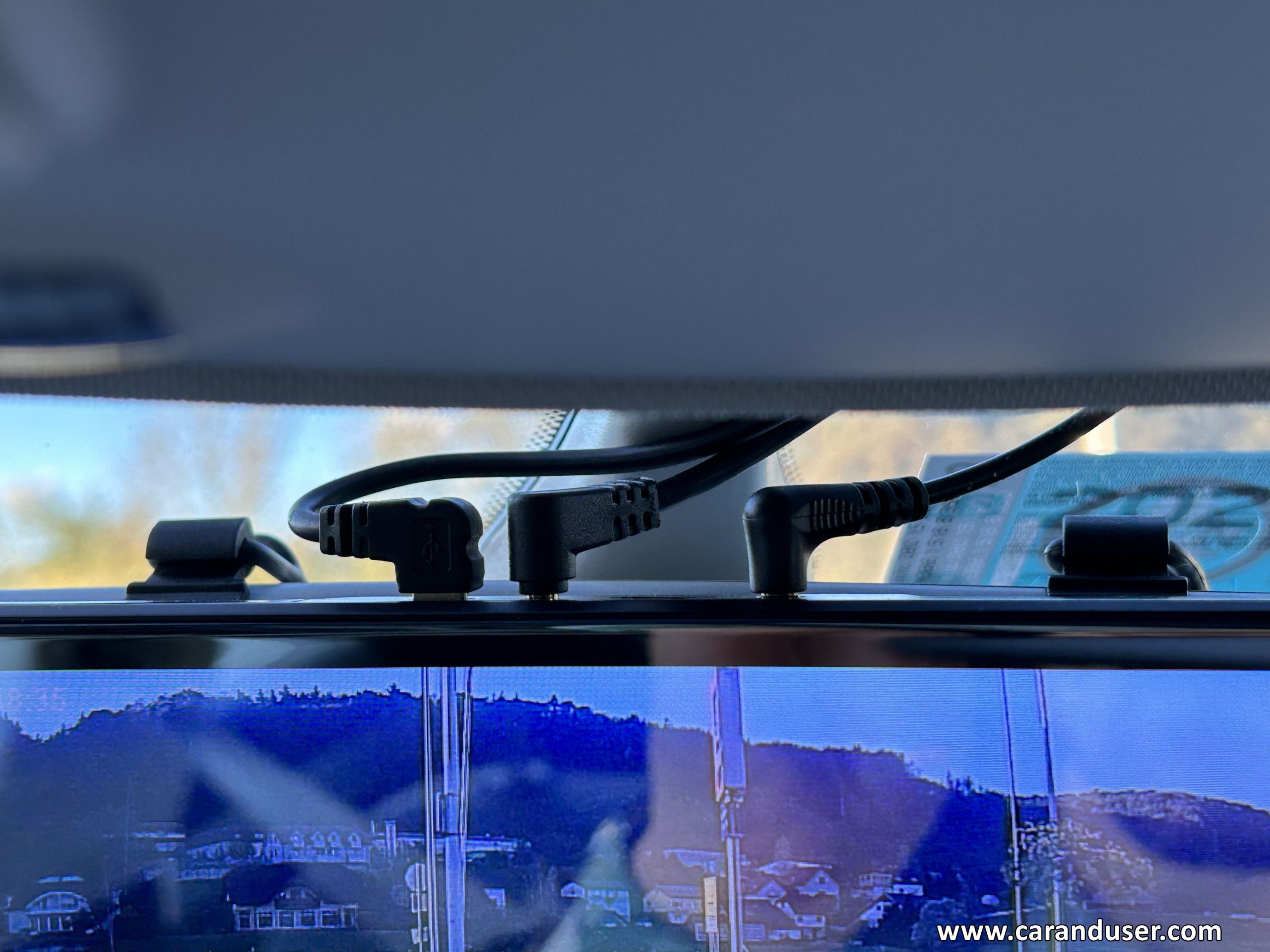 Namestitev notranjega ogledala z dvojnim zaslonom je precej preprosta, saj ga s prilagodljivima gumicama posadimo neposredno na obstoječe avtomobilsko vzvratno ogledalo. Zatem lahko priklopimo napajalnik v klasično 12-voltno vtičnico in »voila«, kamera je pripravljena za uporabo. V tej konfiguraciji zmore opravljati snemanje sprednjih posnetkov, za kaj več pa bo potrebno zavihati rokave, namreč sledi napeljava kabla za povezavo vzvratne kamere. Na tej točki je primerno poiskati najbolj učinkovito pot kjer bo potekal kabel do zadnje kamere. V našem primeru smo kamero napeljali skozi notranji A stebriček, preko notranjih pragov in vse do zadnjega stekla. Če želimo uporabljati možnost samodejnega vklopa kamere za vzvratno vožnjo ob premiku v vzvratno prestavo, je potrebno del kabla povezati z vzvratno lučjo. Ob koncu le še nastavimo zadnjo kamero, povežemo kable in uporaba sistema se lahko prične.