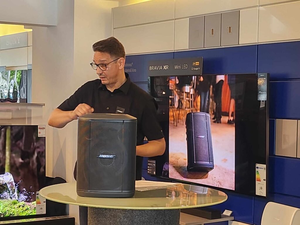 Mi smo si Bose S1 Pro ogledali (in priposlušali) v živo. Seveda so bile izbrane skladbe prilagojene temu, da iz zvočnika iztisnejo kar najboljše, a smo si bili enotni, da tako (relativno!) majhen zvočnik zmore zares impresiven zvok in jakost. Zvočnik namreč tehta 7 kilogramov, kot opcijsko opremo pa si lahko omislite tudi nahrbtnik. Če boste poleti po raznih mestih zabavali mimoidoče – jim peli ali igrali – se želeli postaviti pred prijatelji, ali pa enostavno samo uživati v dobri glasbi, potem je S1 Pro zagotovo zvočnik, ki ga ne smete spregledati.