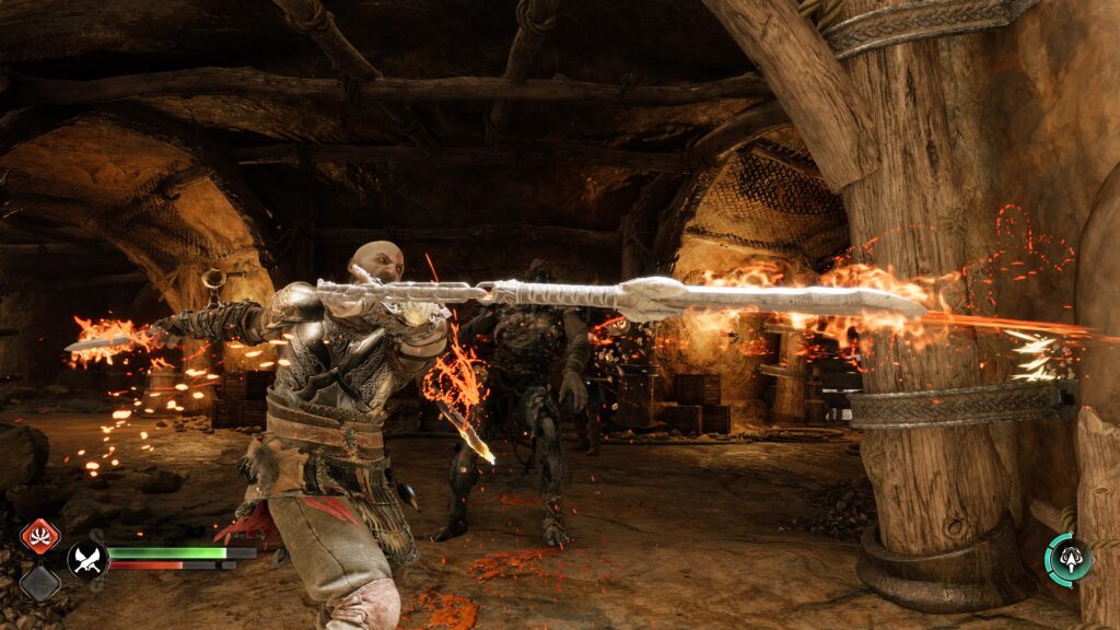 Večino igre sicer upravljate s Kratosom, a je tudi lik Atreusa in Freye več kot odično izpopolnjen, vsak pa ima svoje prednosti. Atreus je namreč lokostrelec, pri čemer je tudi poudarek. Oba, tako oče kot sin, imata sposobnost, ob sočasnem pritisku na R3 in L3, da se za kratek čas preobrazita v superjunaka, ki sta nesmrtna (Atreus se preobrazi v volka), kar pride še kako prav, ko je vaše zdravstveno stanje dodobra načeto, vas pa šef mlati kot prazno slamo, hkrati pa je tudi on na koncu z močmi.