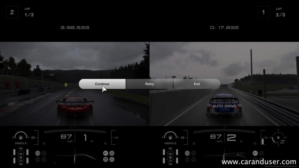 Način dirkanja je odvisen od izbire kategorij, dirke pa lahko trajajo od nekaj krogov do (dejansko) ene ure igranja. Ob tem je potrebno poudariti, da je več kot fantastična izkušnja z menjavo vremena. Če se zakalkulirate z mehkimi dirkalnimi pnevmatikami, vas pa nepripravljenega ujame dež, si boste ob beštijah (bolj zmogljivih vozilih z zadnjim pogonom) dodobra pričarali drsalnico, saj je vožnja bolj podobna poplesavanju kot dirkanju.