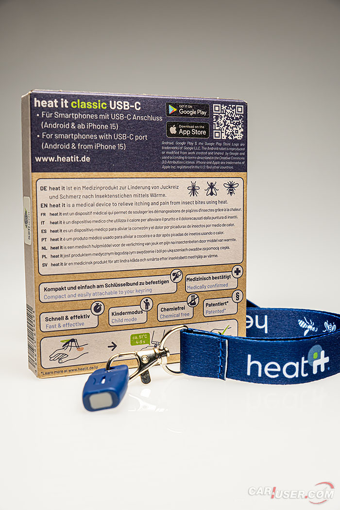 Heat it je miniaturen pripomoček velikosti palca, ki ga zadegate v vaš mobilni telefon, nato pa s približno 50 stopinjami celzijami segrevamo mesto pika. Z uporabo koncentrirane toplote lahko enostavno zdravite pike žuželk. Heat it je združljiv z Androidom in operacijskim sistemom iOS, pri slednjem se aplikacija ob prvi uporabi Heat it ključka tudi samodejno namesti na vaš telefon.