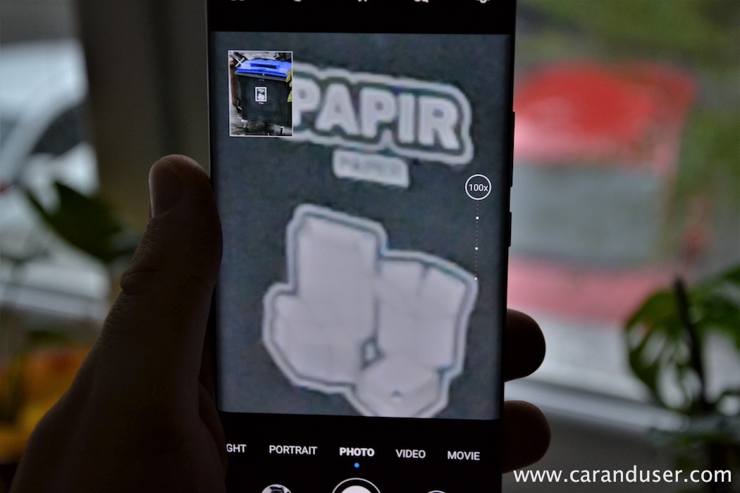 Stopnja višje pa je ”magični” 100-kratni zoom. Z njim ne boste zajemali fotografij za velike oglasne panoje, ampak je po drugi strani možnost sila priročna, če je potrebno koga zalezovati. Primer iz vsakdana.