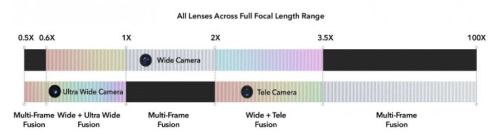 Prikazane fotografije so brez popravkov, vključenih filtrov ali posebnih nastavitev med fotografiranjem. Zgolj postavitev kadra in pritisk na sprožilec. Vse ostalo je delo čarobnih kamer, ki se nahajajo v markantnem krogu na zadnji strani ohišja. Glavna kamera ponuja 50 MP, ultraširoka se postavlja s 50 MP in svoje doda še periskopska telefoto kamera s 64 MP, ki ponuja 3,5-kratni optični zoom ter vse tja do 100-kratne hibridne fuzije. Razlaga delovanja kamer na priloženi grafiki: