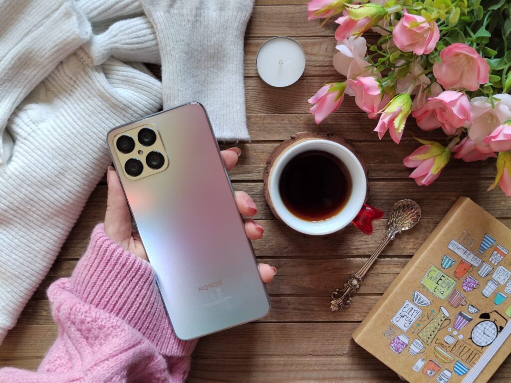 Honor X8 je debel le 7,45 mm in tehta komaj 177 g. Pametni telefon Honor X8 se pohvali z ravnim robom in elegantnimi zaobljenimi vogali na vseh štirih straneh, zato se Honor X8 udobno prilega dlani in ga brez težav spravimo v žep ali majhno torbico.