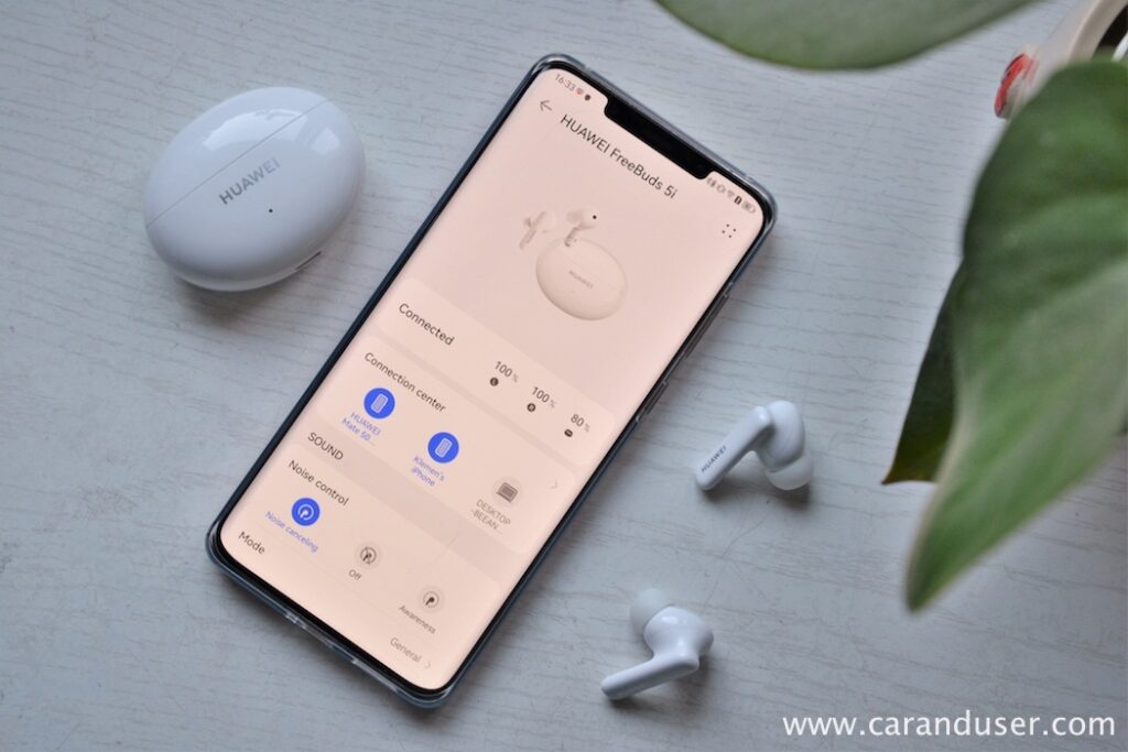 Rezultat so brezžične slušalke, ki uporabnika razvedrijo na več področjih. Etui Huawei FreeBuds 5i ohranja podobne gabarite in obliko jajca, ali kot je mene spomnil na kultnega ”tamagotchija”. Izbirali boste lahko med tremi barvami mat črno, svetlo modro ter takšno belo, ki je mogoče celo najbolj univerzalna in prikladna. A to je na vas. Kar kaže na prej zapisano je podatek, da se zdaj v enakem volumnu nahaja baterija s skoraj 2-krat večjo kapaciteto zaloge energije. Kljub večji, 410 mAh bateriji, se je masa etui zmanjšala za 2 g. Seveda je nekaj izgube prišlo na račun krajših in lažjih slušalk. Posamezna ušesna slušalka tehta 4,9 g, kar je 0,5 g manj kot predhodna izdaja oziroma manj kot ”vaga” kovanec za 20 evropskih centov.