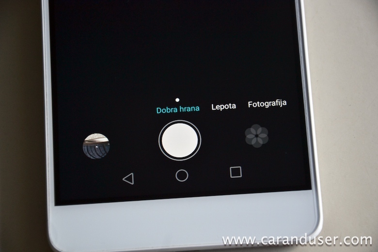 Čeprav naštevam le tehnične podatke, moram telefon kar pohvaliti, saj se dobro odreže tudi v praksi. Fotoaparat je zelo hiter in v trenutku posname fotografijo. Podmeni fotoaparata omogoča skoraj profesionalne nastavitve za zajem najboljše možne fotografije. Vnaprej nastavljeni programi so Dobra hrana, v katerem se zaslonka fokusira na zapečeni kos mesa, Panorama in Lepota, s katerim prikrijemo še tako veliko akno.