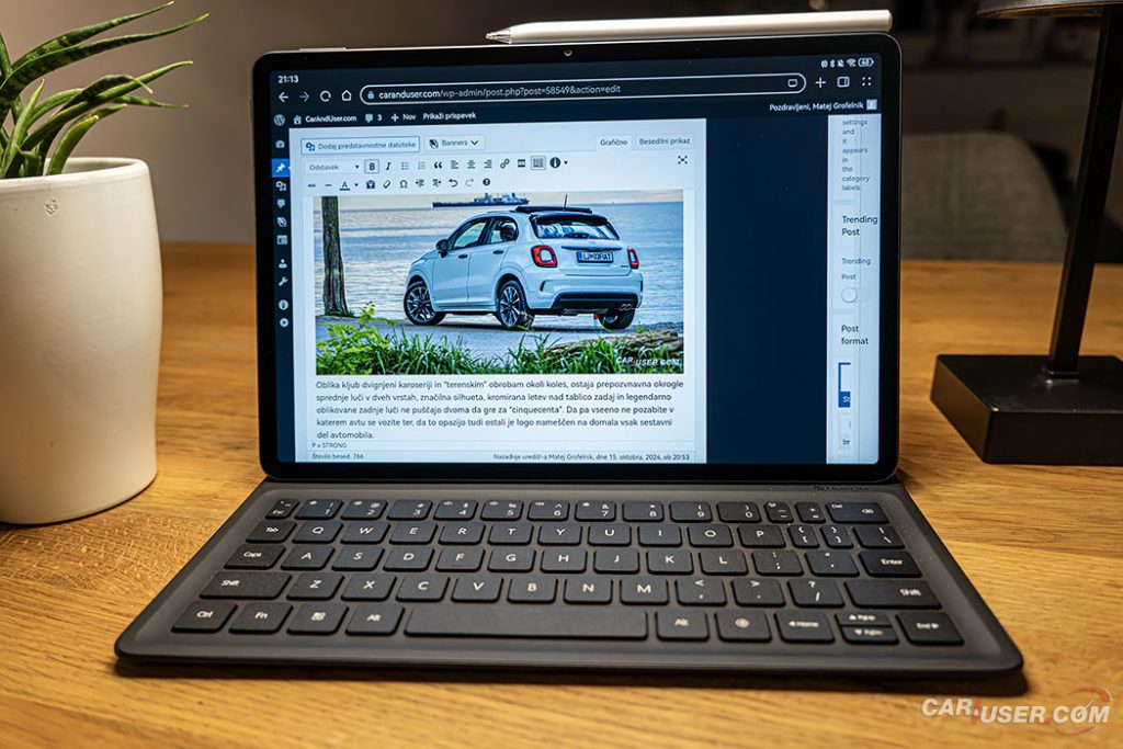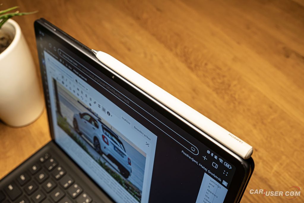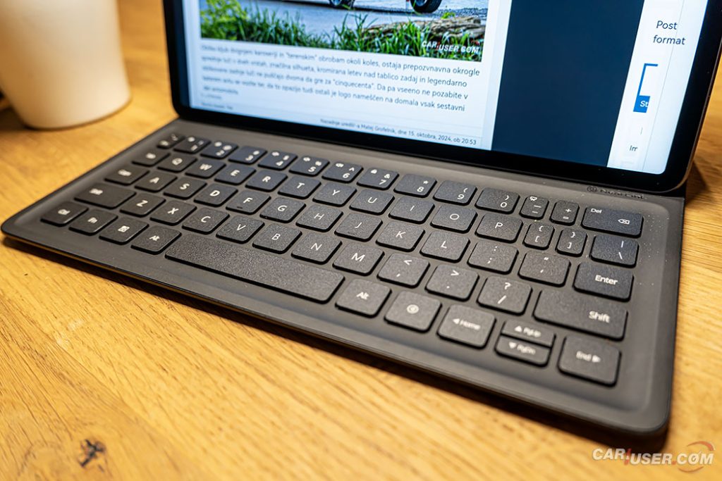 Ker sam spadam med slikarsko manj spretne sem se raje lotil preizkusa tipkovnice in aplikacij, potrebnih za vsakodnevno ustvarjanje prispevkov. Tipkovnica integrirana v kakovosten usnjen ovitek se, tako kot pisalo, samodejno poveže s tablico prek tehnologije NearLink, ko jo s pomočjo magnetov namestimo na MatePad.