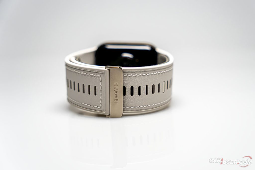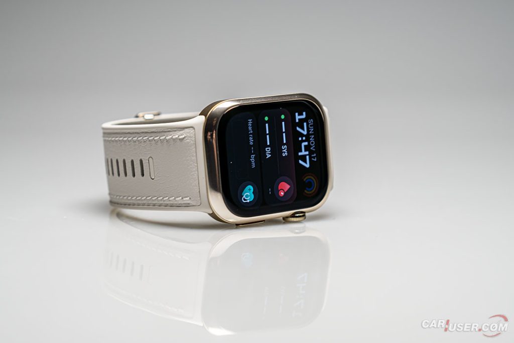 Nova pametna ura se ponaša z elegantno in tanko zasnovo, ki vključuje ultra ozko mehansko zračno blazino, vgrajeno v pašček, ter kvadratni zaslon velikosti 4,6 centimetra (1,82 palca). Črna ali zlata različica sta opremljeni s paščkom iz fluoroelastomera, materiala, ki je odporen na znoj in prijazen do kože, kar zagotavlja udobje pri celodnevnem nošenju. Na voljo pa je tudi z elegantnim kremno obarvanim usnjenim paščkom. Brez težav jo povežete z vsakim pametnim telefonom, ki uporablja operacijske sisteme Android ali iOS, kar omogoča enostaven dostop do njenih naprednih funkcij za širok krog uporabnikov.