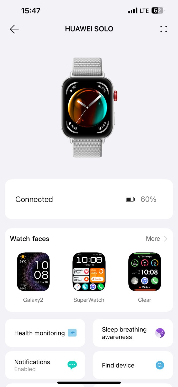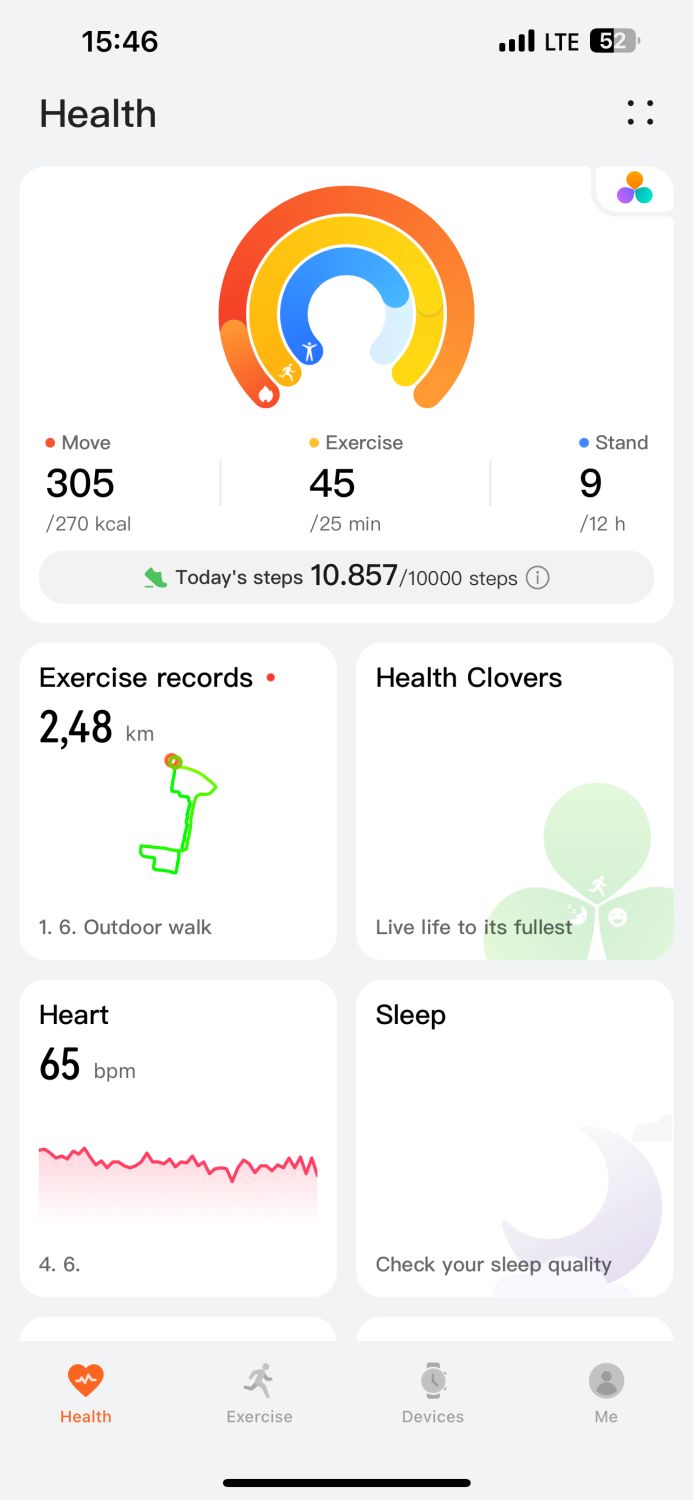 Takšne težave pri Huawei Watch Fit 3 ni bilo, ob pravilni povezavi z jabolčnim telefonom so brez zapletov delovali vsi programi na uri, kar me je, ob predhodnem pomanjkanju, nadvse navdušilo. Velika prednost v povezljivosti v primerjavi s tekmeci pomeni, da lastniki Applovih mobilnikov niso primorani izbirati le hišne nosilne naprave in imajo tako na voljo širši krog izbire. Predvsem ugodnejših in nenazadnje privlačnejših naprav.