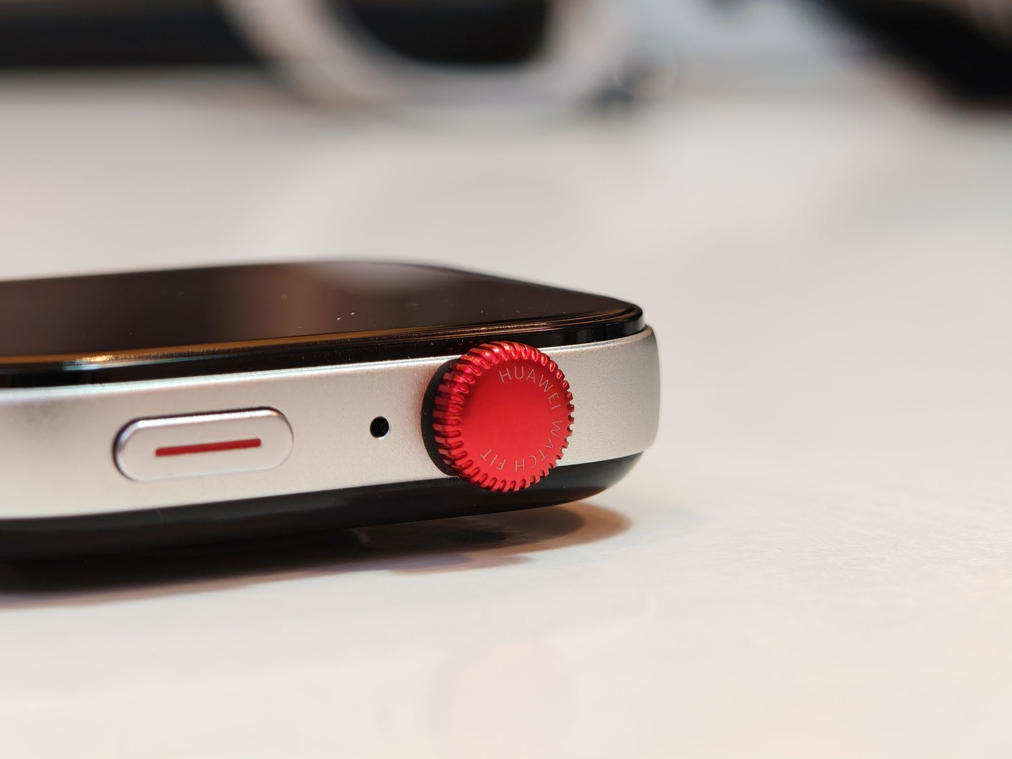 Kje so Huaweijevi oblikovalci našli navdih ni potrebno dvakrat poudarjati, vendar vizualna povezljivost z jabolčno uro ni nič slabega, saj deluje bolj premijsko, hkrati pa dovolj drugače, da ima svojo unikatno osebnost – z 9,9 mm debeline je občutno tanjša. Za to poskrbi izstopajoč rdeč vrtljiv gumb na zgornji desni strani zaobljenega ohišja, s katerim pretikamo med meniji, aktiviramo različne funkcije in meni najljubše, ob zaklenjenemu zaslonu, z vrtenjem odklenemo dostop do naprave. Pod velikim rdečim gumbom je nekoliko bolj skrita ovalna tipka za hiter dostop do športnih aktivnosti, z dolgim pritiskom pa se vključi glasovni pomočnik.