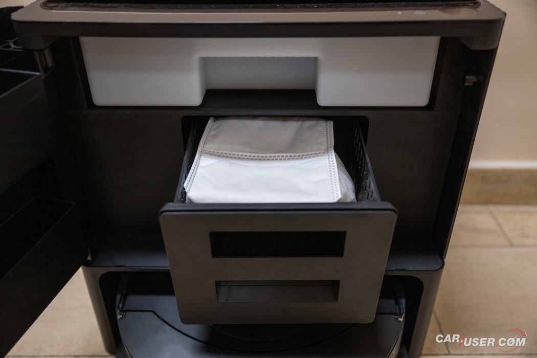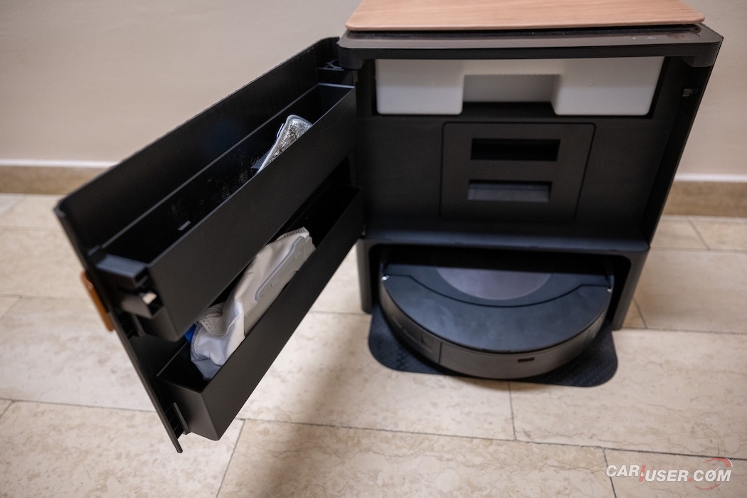 V polnilno postajo so, poleg samodejnega praznjenja koša za smeti, dodali še samodejno polnjenje posode za vodo. V Postaji je dovolj velik rezervoar, ki po navedbah proizvajalca zadrži dovolj tekočine za mesec dni običajne uporabe, iz katerega po potrebi napolni posodo v robotu. Polnilna postaja sama po sebi deluje tudi nekakšen „state of art“, saj so nanj dodali še nekaj imitacije lesa, kar zna biti v marsikaterem domu odličen prostor za odlaganje cvetličnih loncev ipd. Polnilna postaja je sedaj tudi bolj avtonomna in praktična, saj ni več treba praktično po vsakem čiščenju tega početi ročno. V praksi boste morali le oprati krpo od časa do časa, pogostost pa seveda zavisi od vašega redoljubja.