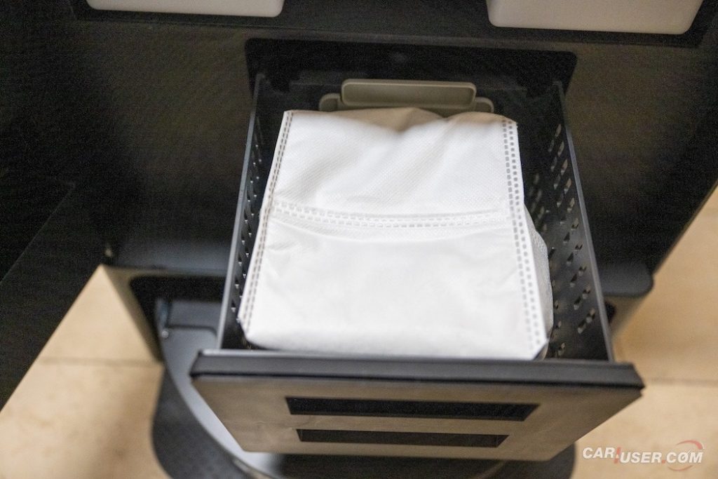 V polnilno postajo so, poleg samodejnega praznjenja koša za smeti, dodali še samodejno polnjenje posode za vodo. V Postaji je dovolj velik rezervoar, ki po navedbah proizvajalca zadrži dovolj tekočine za mesec dni običajne uporabe, iz katerega po potrebi napolni posodo v robotu. Polnilna postaja sama po sebi deluje tudi nekakšen „state of art“, saj so nanj dodali še nekaj imitacije lesa, kar zna biti v marsikaterem domu odličen prostor za odlaganje cvetličnih loncev ipd. Polnilna postaja je sedaj tudi bolj avtonomna in praktična, saj ni več treba praktično po vsakem čiščenju tega početi ročno. V praksi boste morali le oprati krpo od časa do časa, pogostost pa seveda zavisi od vašega redoljubja.
