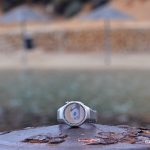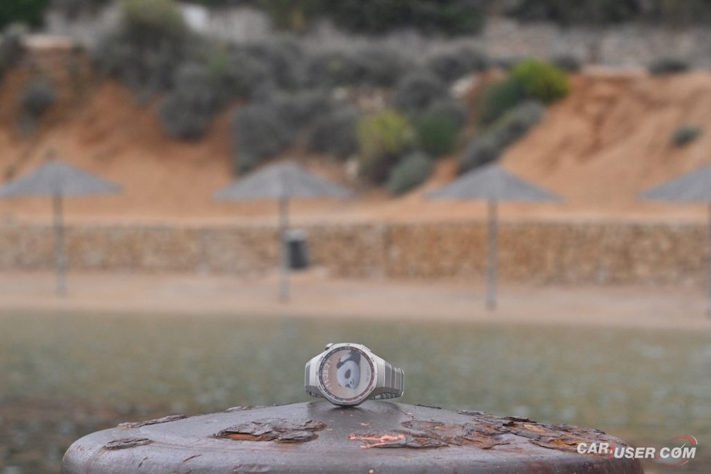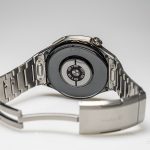 Zasnovo ohišja dopolnjujeta še vrtljiva ”krona” in stranski gumb na desni strani ohišja, pozicionirana ob 2. uri in 4. uri. Hrbtna stran ura je enostavno črna, saj tu domuje senzorika ter konektor za brezžično polnjenje.