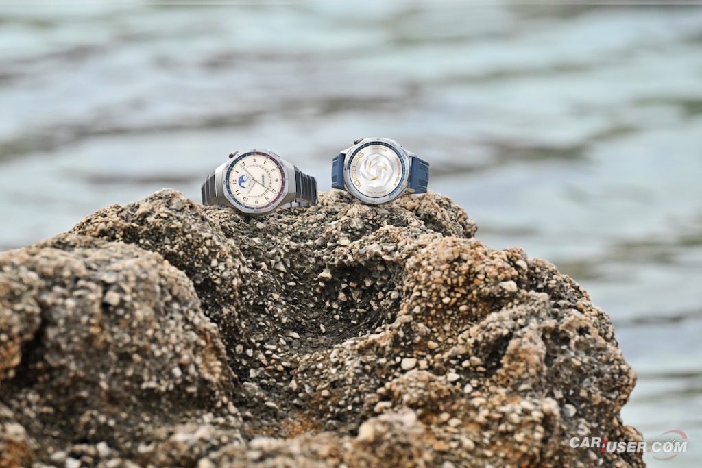 Tako Huawei Watch GT 5 in Huawei Watch GT 5 Pro imata prepoznavno 8-kotno obliko ohišja z izbočeno luneto, ki skrbi za stilsko komponento s 60-minutno skalo. Razlika se opazi pri zasnovi ”ušes” ohišja, saj se ta pri Watch GT 5 Pro nadaljujejo v čudovito integrirano zapestnico, narejeno iz kombinacije titana in keramike. Medtem, ko je Watch GT 5 Pro matiranega izgleda z brušenimi površinami ter s tem deluje bolj pripravljena na pustolovščine, se GT 5 ponaša z brušenimi in poliranimi površinami ohišja.