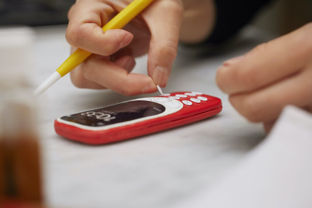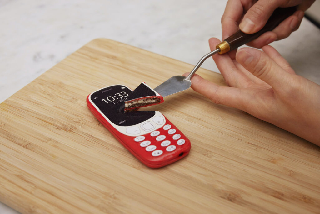 Izdelava torte Nokia 3310 v naravni velikosti je trajala 40 ur, ustvarila pa jo je svetovno znana umetnica sladic Michelle Wibowo. Notranjost torte je sestavljena iz čokoladnega biskvita in vaniljeve maslene kreme, znamenito trpežno ohišje Nokia 3310 pa je narejeno iz sladkorne lupine. Vsak gumb je izrezan in oblikovan do popolnosti ter dodan posebej.
