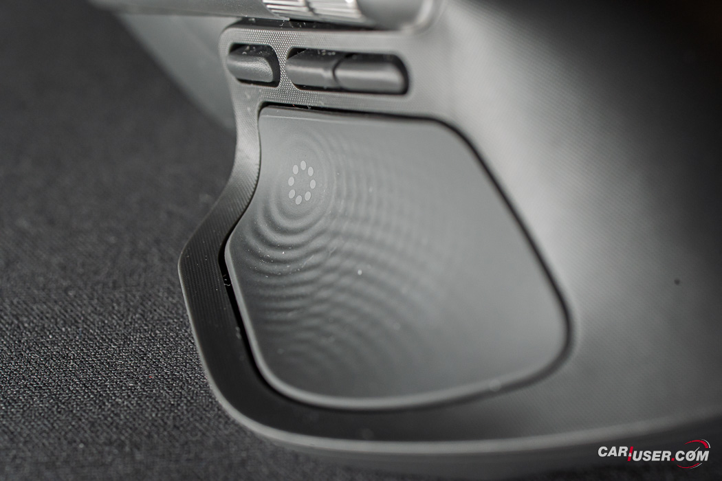 Naslednja inovacija je dodatna nova tipka s haptičnim odzivom, ki aktivira Actions Ring funkcijo. To je ena izmed glavnih novosti. Ta vibracija ni le potrditev pritiska, ampak se uporablja tudi za “Actions Ring” v programski opremi Logi Options+, ki na zaslon prikaže najpomembnejša orodja in s haptiko opozarja na določena stanja ali meje pomikanja.
