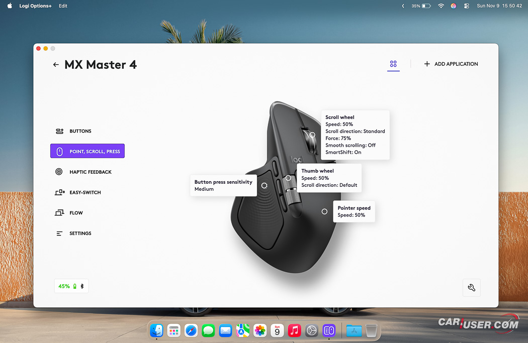 Naslednja v vrsti inovacij je izjemna natančnost, ki jo omogoča senzor Darkfield z ločljivostjo do 8000 DPI in je tako kot praktično vse na »štirici« nastavljiva, ter zagotavlja izjemno natančno sledenje na vseh površinah vključno s steklom. Slednje je ključno pri grafičnem oblikovanju ali obdelavi velikih preglednic na monitorjih z visoko ločljivostjo. Za piko na i pa je tu še najpomembnejša inovacija – personalizacija, kjer s pomočjo aplikacije Logi Options+ postane MX Master 4 resnično vaša. Vseh 8 tipk, vključno s stranskim koleščkom za palec in novo haptično tipko, je mogoče programirati za specifične funkcije. Omogoča tudi aplikacijsko specifične profile, ki so kot pred nastavljeni na voljo že znotraj programa Logi Options+ in tako miška samodejno prepozna uporabljeno aplikacijo ter preklopi profile nastavitev.