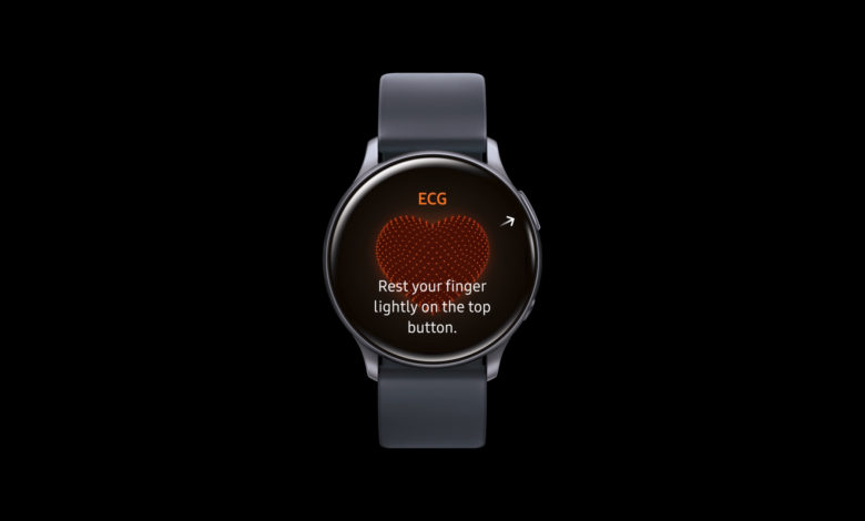 Funkcija elektrokardiograma deluje tako, da analizira električno aktivnost srca prek senzorja na Galaxy Watch3 ali Galaxy Watch Active2. Ko udobno sedite, preprosto odprite aplikacijo Samsung Health Monitor in preverite, če je ura trdno nameščena na zapestju. Nato podlaket naslonite na ravno površino in za 30 sekund rahlo položite konico prsta nasprotne roke na zgornji gumb pametne ure. Aplikacija bo nato izmerila srčni utrip in ritem, ki bo potem označen kot sinusni ritem (normalno, običajno bitje srca) ali AFib (kadar srce bije nepravilno).