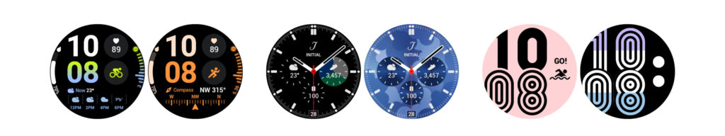 Poleg tega, da je ura Galaxy Watch komunikacijsko orodje, ki je vedno z vami, ponuja več možnosti prilagajanja obraza ure, tako da se bolje ujema s tem, kar nosite. Uživajte v najljubši številčnici ure v različnih slogih tako, da številčnico večkrat dodate na seznam priljubljenih in vsak primer prilagodite z različnimi barvami in paletami4. V seznamu priljubljenih pa so izbrani urni obrazi shranjeni za hiter dostop, tako da vam ni treba brskati po celotni zbirki.