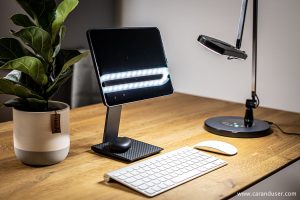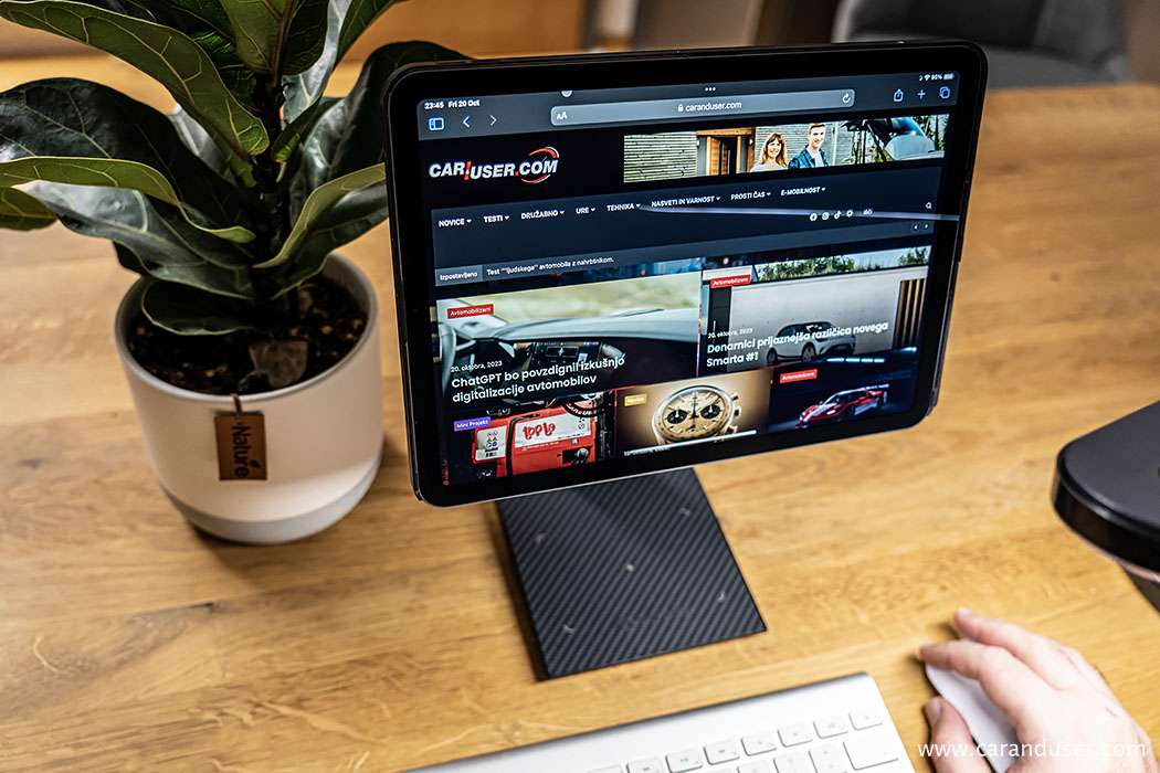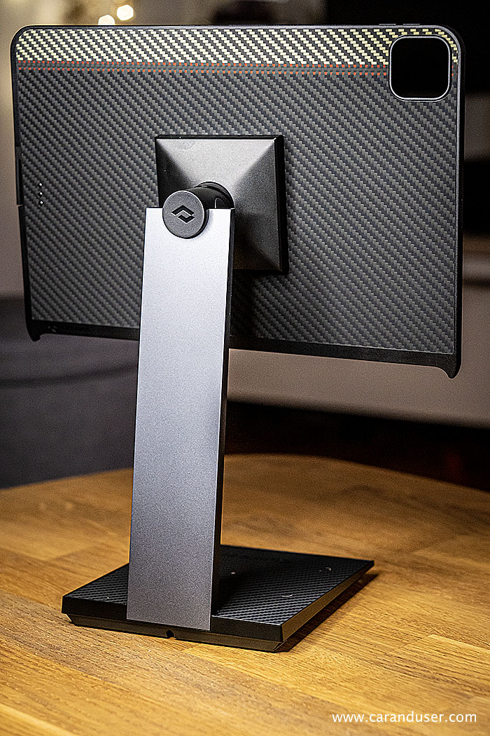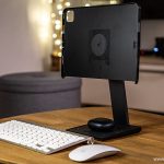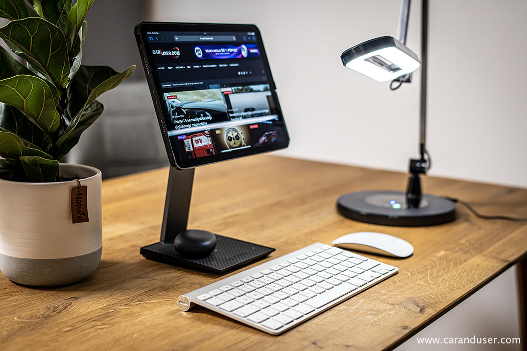 Ko smo pomislili, da smo najboljši del pripomočkov že odprli in namestili, nas preseneti MagEZ Stand. V podobno lično embalažo skrit na prvi pogled izjemno kakovosten del opreme ob enostavni montaži preseneti s svojimi dodatnimi funkcijami. Osnovna funkcija stojala spremeni vašega iPada ob dodatku tipkovnice in miške v pravi mali računalnik – tipa vse v enem. Da bodo v njem uživali uporabniki vseh velikosti in oblik, glava stojala omogoča nastavitev nagiba zaslona, hkrati pa omogoča vrtenje in izbiro horizontalnega oziroma vertikalnega položaja uporabe tablice.
