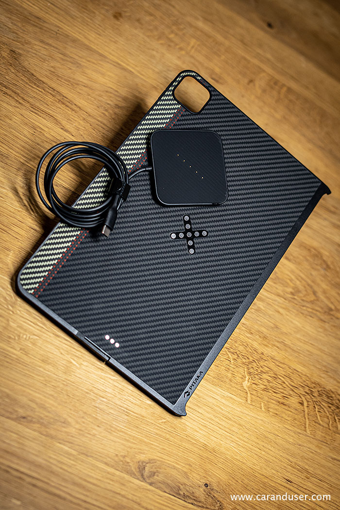 Lično zapakiran ovitek, ki nas razveseli ob odprtju embalaže je le začetek, pod ovitkom se namreč skriva še brezžična polnilna postaja. Ovitek navduši s svojo debelino oziroma tankostjo in kvaliteto izdelave, pri čemer kar ne moremo verjeti, da se v njem skriva vsa potrebna »infrastruktura« za izvajanje brezžičnega polnjenja.
