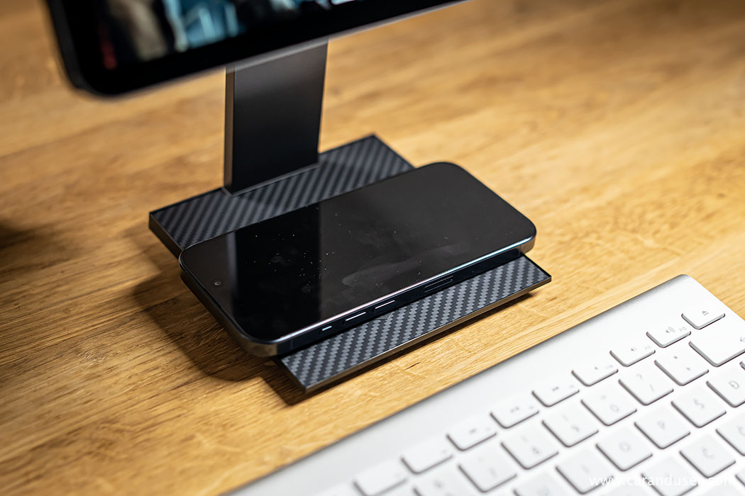 Da bo izkušnja res popolna in da uporabnik ne zamudi nobenega pomembnega obvestila, hkrati pa skrbi za neprekinjen brezžični dotok energije v svoj prenosni telefon, so v podnožje dodali Qi brezžični polnilnik, ki omogoča (ob uporabi ustreznega napajalnika, pri Pitaki za najbolj primernega ocenjujejo takega z izhodno močjo 45W) polnjenje naprav z močjo do 15W.