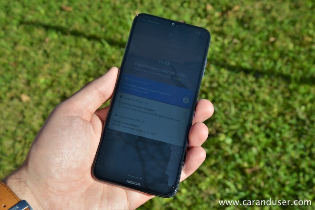 Tako Nokia G10 kot G20 se ponašata s stranskim gumbom, s funkcijo zaznave prstnega odtisa za odklep, katerega je mogoče izvesti tudi s prepoznavo obraza. Ne manjka 3,5 mm ”jack” priklop na vrhu ohišja za uporabo slušalk stare šole ter polnilno podatkovni priklop tipa USB-C na sredini spodnjega dela telefona. Preko le-tega se energija pretaka v 5050 mAh, ki naj bi zagotovila tudi cel vikend brez polnjenja. Seveda z intenzivnejšo uporabo mobilca avtonomija pada, a več kot dan vam sigurno ne bo treba razmišljati o lokaciji šuko vtičnice – ne pri G10 kakor tudi ne pri modelu G20.