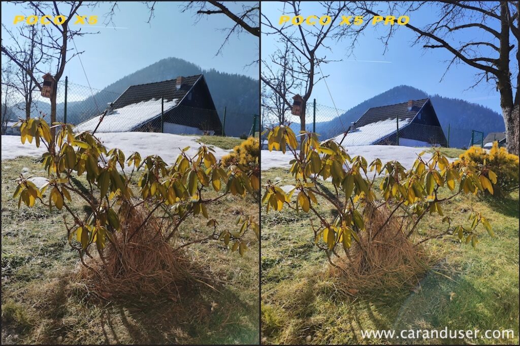 Posvetimo se najpomembnejšemu aspektu pametnega telefona. Fotoaparatu. Razlika med modeloma je v 60 slikovnih pikah glavne kamere. Makro in ultraširoka kamera sta med seboj podobni. Tipalo s 108 milijoni slikovnih pik zajame že skorajda profesionalno fotografijo. Zagotavlja fotografije v ultra visoki ločljivosti ter zajema najmanjše podrobnosti in barve tudi v temnih območjih. Poco X5 Pro 5G podpira še snemanje videa 4K. Le-ta funkcija je pri modelu X5 omejena na FullHD oziroma 1080p, medtem ko sama glavna kamera premore 48 milijonov slikovnih pik.