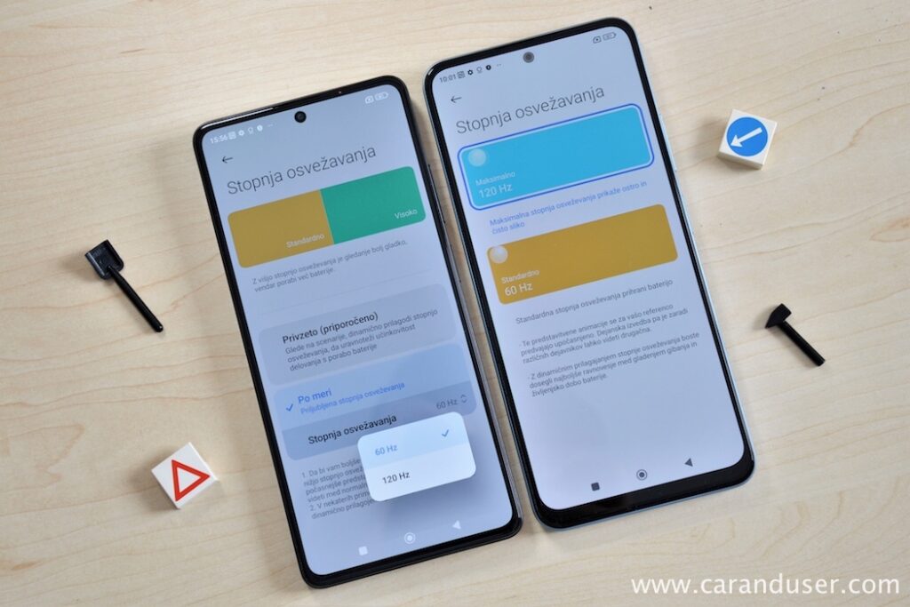 Še nekaj razlik je med telefonoma pri zaslonu. Poco X5 ima malce več ‘mesa’ okoli zaslona, kar po drugi strani naredi X5 Pro bolj elegantnega, z manjšimi robovi. Dočim sam zaslon dražjega modela omogoča boljši svetilnost, izrazitejše barve ter možnost prilagodljivega delovanja hitrosti osveževanja. Slednje je denimo pri modelu X5 omejeno zgolj na 60 Hz ali 120 Hz. In še najpomembnejša lastnost oziroma razlika. Vstopni model ima zaslon zaščite Corning Gorilla Glass 3, model Pro pa se ponaša s Corning Gorilla Glass 5.