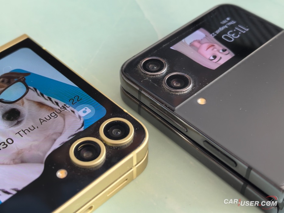 V odprtemm načinu sta si velikostno skoraj do lasu enaka, večja ralika nastane ko ju poklopite. Pri Flipu 4 znaša med 15,9 in 17,1 milimetra (vmes zazeva kar precej velika luknja), medtem ko znašajo mere zloženega Flipa 6 85 x 72x 14,9 milimetra, debelina pa je skozi celoten telefon enaka. Flip 6 uporablja novejšo generacijo Corning Gorilla Glass Victus+ in standard zaščie IPX8. To pomeni, da lahko prenese potopitev v vodo do 1,5 metra do 30 minut.
