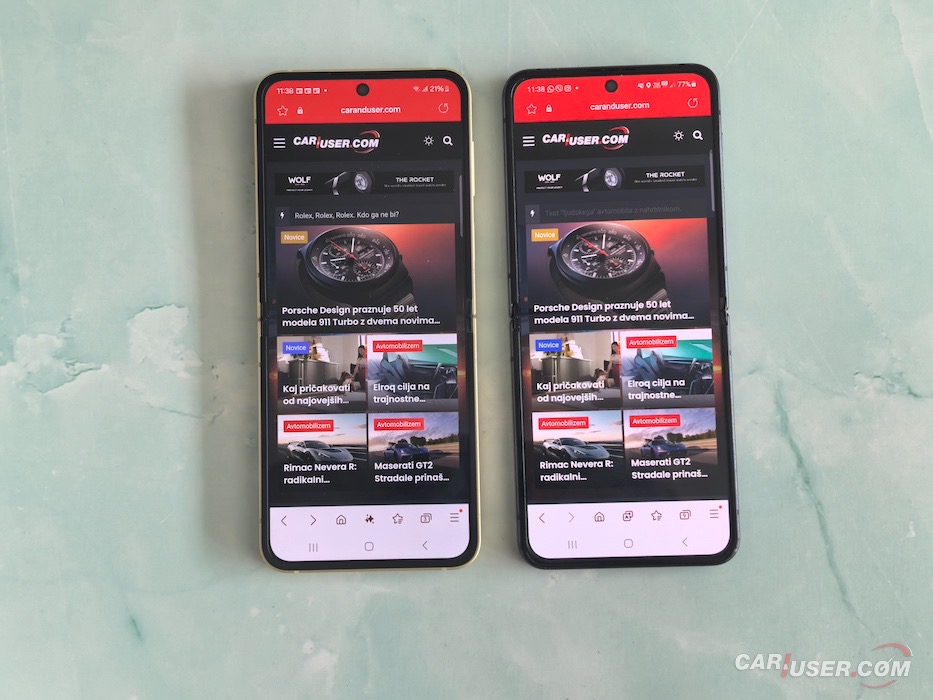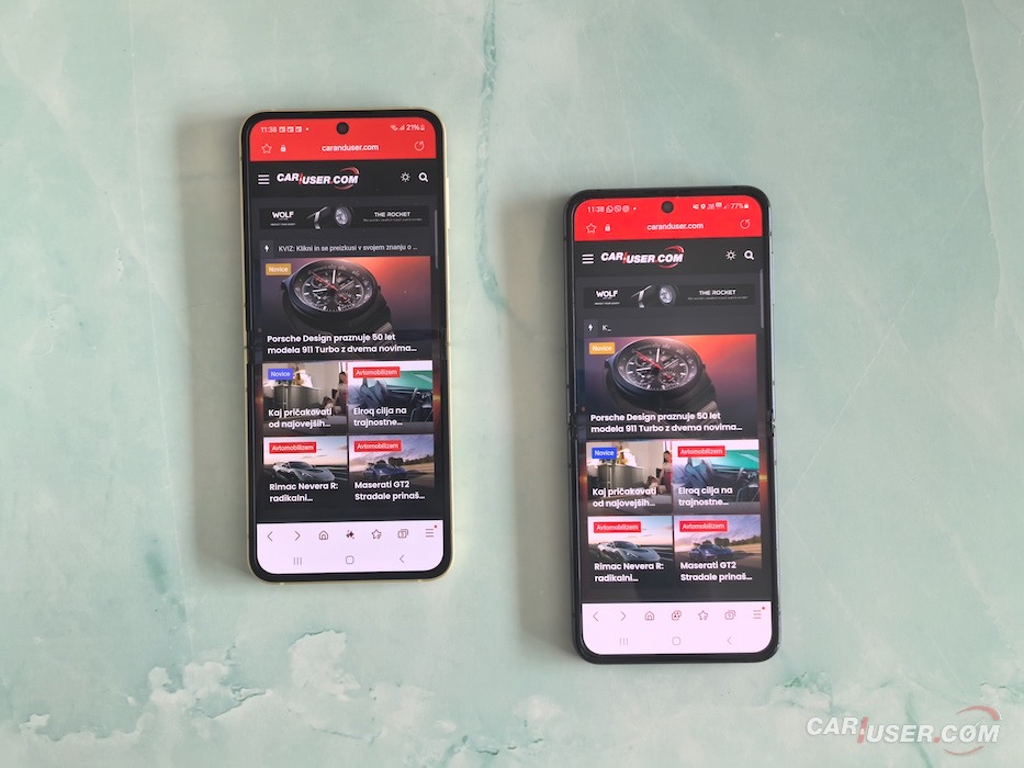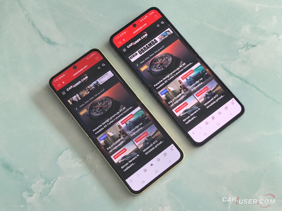 Oba zaslona sta odlična, oba s tehonologijo AMOLED, predvsem pa ima Flip 6 nekoliko manjšo sredinsko „luknjo“. Sicer so se nad tem utorom pritoževali predvsem vsi tisti, ki preklopnih telefonov niso nikoli imeli, medtem ko sem povprašal lastnike takšnih napravicih, koliko jim je ta vdolbina popilila živce, pa so vsi v en glas odvrnili, da je sploh ne opazijo … in med njimi sem tudi sam. Praktično nikoli ni bila faktor, ki bi bil moteč.