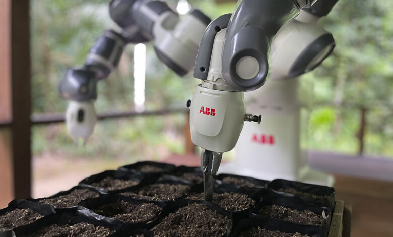 Švicarski koncern ABB Robotics je v sodelovanju z neprofirno organizacijo Junglekeepers razvil pilotni projekt z uporabo industrijskega delovnega robota, da bi prikazali potencial pri ponovnem pogozdovanju Amazonije.