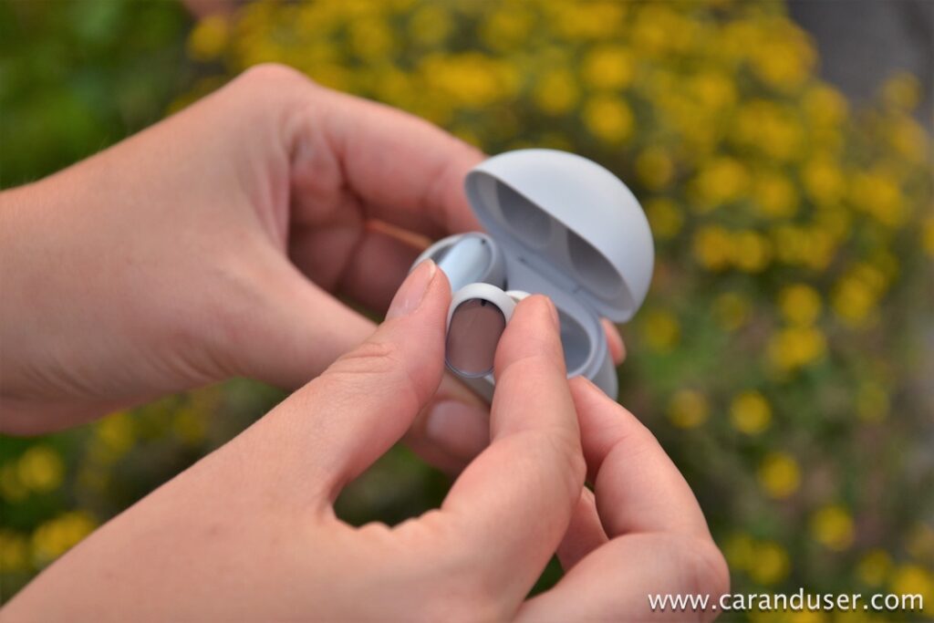 A ni vse samo v lični embalaži, v kateri se poleg etuija ter dveh slušalk, nahajajo še trije pari silikonskih nastavkov velikosti S, M in L, polnilec tipa USB-C ter navodila za uporabo. Saj ne da jih boste rabili, ker je rokovanje s slušalkami sila enostavno.