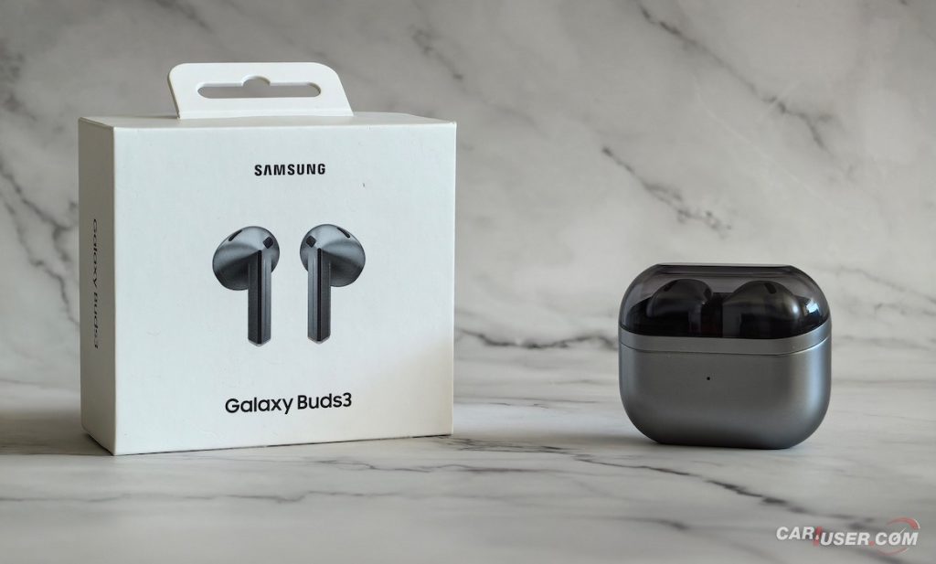 Samsung je pri Galaxy Buds3 odločno prekinil s preteklostjo in predstavili povsem prenovljeno obliko, ki deluje moderno ter hkrati funkcionalno. Tokrat so se odločili za klasičen odprt tip slušalk s kotno obliko, kar omogoča udobno prileganje v ušesni kanal. Nič več neprijetnega pritiska ali občutka tujka v ušesu – Buds3 so z maso le 4,7 grama lahkotne in skoraj neopazne tudi po več urah uporabe. Seveda gre tu za osebno preferenco, tistim, ki so bolj aktivni med uporabo slušalk, svetujem izbiro Buds3 Pro, ki imajo na koncu silikonski nastavek za boljšo stabilnost. Za vsakdanjo nošnjo, predvsem v pisarni ali v vozilu, pa bodo Buds3 precej bolj udobne in dovolj stabilno nameščene v ušesih.