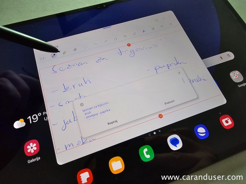 Podobno kot hišni pametni telefon S24 Ultra, se tudi tablica s posodobljenim operacijskim sistemom ponaša s podpornimi funkcijami umetne inteligence. S tabličnega vidika se mi zdi zelo uporabna funkcija Pomoč za zapiske (Note Assist) v aplikaciji Samsung Notes, ki vključuje povzetke, ustvarjene z Galaxy AI, ustvarjanje predlog, ki poenostavijo zapiske z vnaprej pripravljenimi oblikami ter ustvarjanje naslovnic, da so zapiski enostavno opazni s kratkim predogledom. Funkcija Pomoč za prepis (Transcript Assist), ki uporablja umetno inteligenco in tehnologijo za pretvorbo govora v besedilo za prepisovanje, povzemanje in celo prevajanje posnetkov.