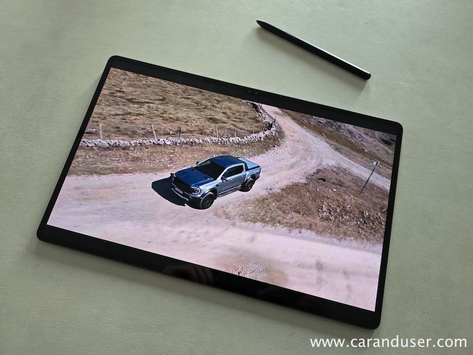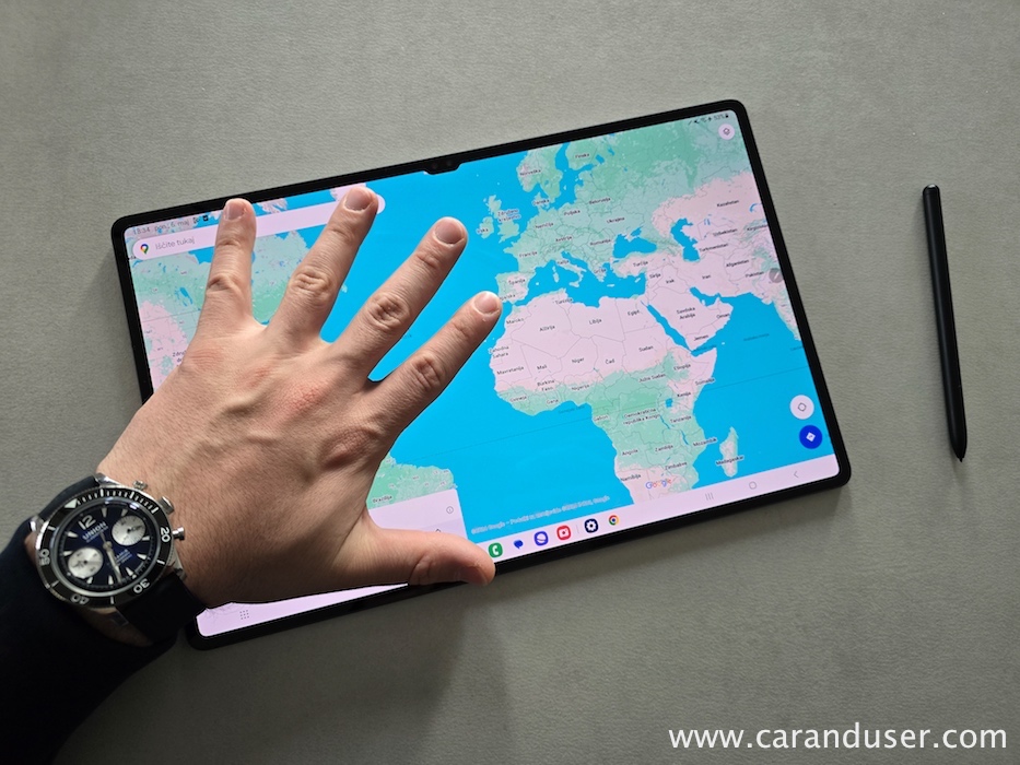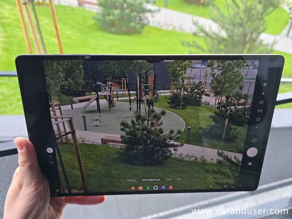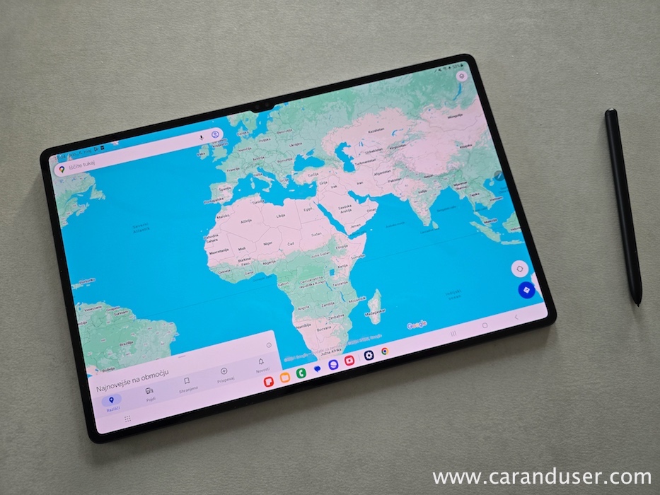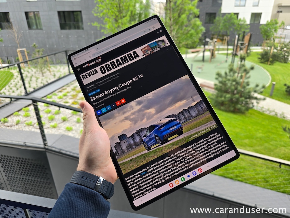 No, tablica ni samo prelomljen prenosni računalnik v prenesenem pomenu, ampak tudi dejansko. Z dodatno opremo tipkovnice (ki, aktivira funkcijo DeX) namreč S9 Ultra postane prav uporaben ”računalnik”. Ker ima zaslon 90-odstotno pokritost glede na dimenzije, praktično brez težav nadomesti moj 15,6-pačni zaslon prenosnega računalnika. Še ena zanimivost. Dimenzije tablice so posledično razširile tipkovnico, ki je zdaj bolj uporabna s širšimi razmaki ter večjo drsno ploščico – žal komplet ni bil prisoten na testu, ogledal sem si ga v butiku.