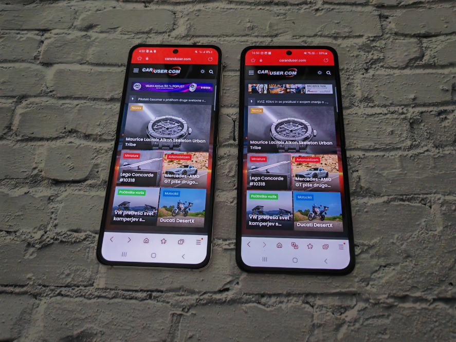 Zaslon je pri obeh Flipih enak, in sicer AMOLED 2x s frekvenco osveževanja 120 hercev, Flip5 se lahko pohvali zgolj s tem, da zmaga v svetilnosti (1750 nitov proti 1200). Je pa zato bistveno večja razlika v sprednjem zaslonu, ko sta Flipa zložena. Pri Flipu4 je le-ta odmerjen s skromnega 1,9 palca, medtem ko ima Flip5 sprednji zaslon velikosti 3,4 palca. V praksi to pomeni, da boste na Flipu4 lahko videli predvsem, kdo vas kliče, prebrali začetek sporočila (prikazuje tudi sporočila najrazličnejših družabnih omrežij), vremensko napoved, imeli shranjene tri najljubše osebe, katere boste lahko priklicali brez odpiranja zaslona … No, Flip5 je bistveno bolj radosten s prikazovanjem. Tam boste že lahko odgovarjali na sporočila, čeravno bo večino posegla po večjem zaslonu in se ne bo mučila z mukotrpnimi majhnimi tipkami. Na sprednjem zaslonu si lahko ogledate tudi posnetke z Youtuba, rokujete s koledarjem …