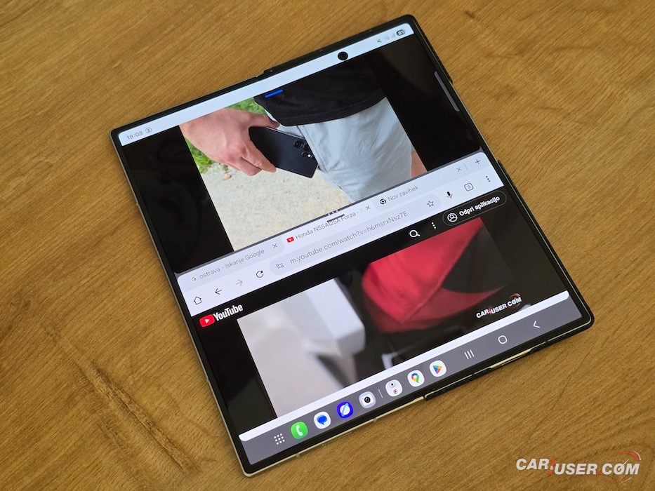 Kaj pa baterija? Ta je ostala nespremenjena s 4400 mAh. Prav tako se niso spremenile hitrosti polnjenja, zato boste v najboljšem primeru s ”doplačljivim hitrim polnilcem” polnili pri 25 W. Brezžično se bo Fold napajal s 15 W, medtem ko bo energijo drugemu telefonu predajal s 4,5 W. Zavoljo optimizacije delovanja Androida 16 s tovarniško prevleko One UI 8, pa naj bi porabil malenkost manj energije in zdržal en dan … če je uporabnik zmeren. Ampak, roko na srce, kdor kupi to zverino, ne bo zmeren. Kot bi Ferrarija vozil v območju nizkih vrtljajev.
