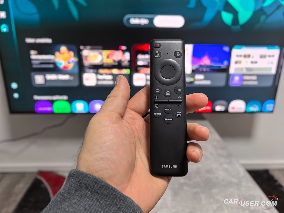 Samsung je televizorju priložil všečen daljinski upravljalnik, ki se polni preko solarnih celic na zadnji strani. To dejstvo imejte v mislih, ko ga boste želeli polniti, daljinec pa naj le bo takrat tudi blizu sončnih žarkov. No, še vedno pa vam ostane precej konvencionalno polnjenje, in sicer preko USB-C priključka. Daljinec ne premore obilice tipk, zato boste tisti z “old school” pristopom potrebovali nekoliko privajanja.