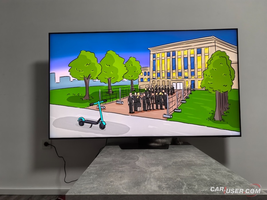 Mini-LED osvetlitev ozadja omogoča izjemno prefinjeno zatemnitev, ki zaslonu iz tekočih kristalov pričara skoraj OLED-ovsko globino črne, razliko bi namreč opazili predvsem v nposredni primerjavi med zaslonoma. Kljub temu, ker je zatemnjevanje zasnovano na območjih in ne na posameznih pikslih, se lahko v prizorih z ostrim kontrastom pojavi rahel haloing (svetlobni sij). Velika prednost Mini-LED tehnologije je izjemno visoka svetilnost. Točkovna svetilnost se je v našem primeru povzpela čez 2000 nitov, celozaslonska pa dosega 800 nitov. Kdor gleda televizijo v močno osvetljenem prostoru, bo to lastnost izjemno cenil.