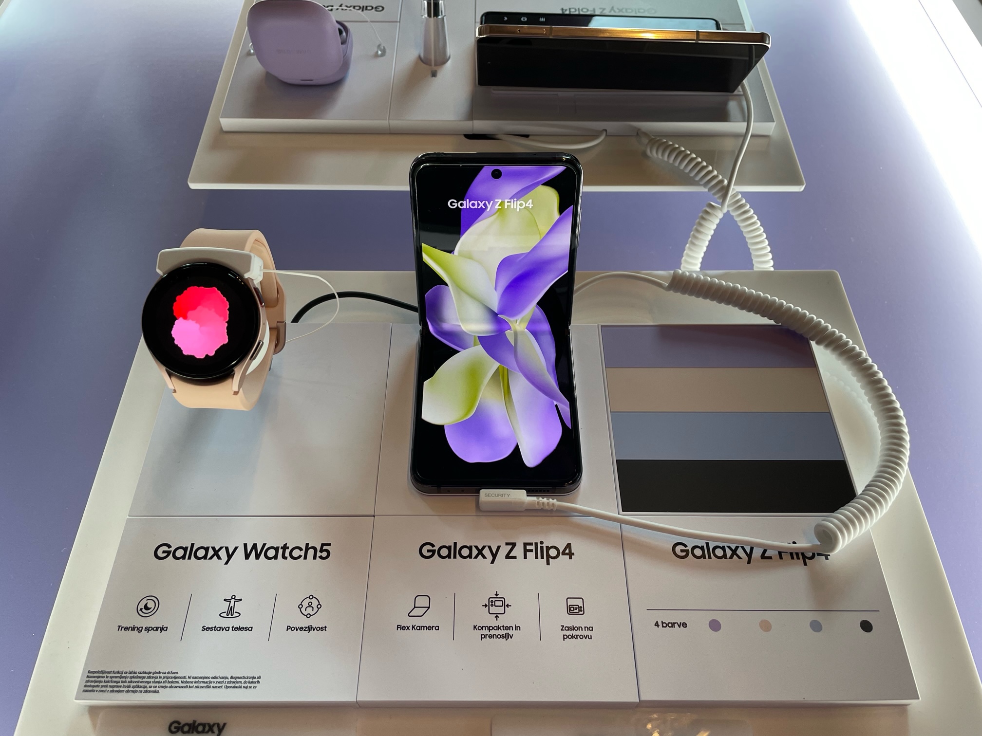 Včeraj je v središču prestolnice potekala predstavitev novih inovativnih in vsestranskih naprav že četrte generacije Galaxy Z serije. Te so bile ustvarjene na temelju dolgoletnih tehnoloških inovacij in izkušenj podjetja Samsung, z mislijo na trenutne življenjske stile, potrebe in želje uporabnikov po vsem svetu. Galaxy Z Flip4 in Galaxy Z Fold4 zložljiva telefona, Galaxy Watch5 serija pametnih ur in Galaxy Buds2 Pro brezžične slušalke, ki jih je podjetje napovedalo že 10. avgusta, so bili včeraj predstavljeni zbranim predstavnikom slovenskih medijev, od danes naprej pa so že na ogled in na voljo za nakup tudi širšemu krogu uporabnikov.